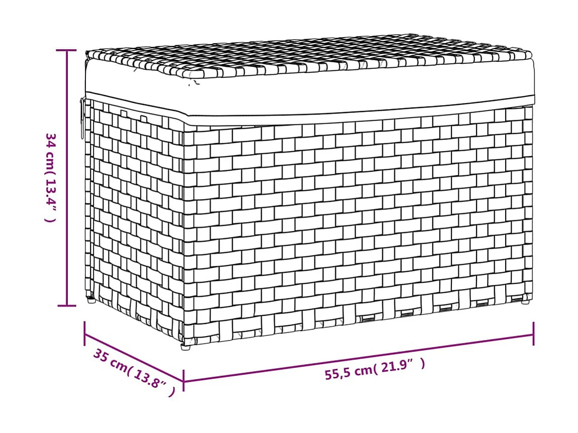 Panier à linge avec couvercle gris 46x33x60 résine tressée