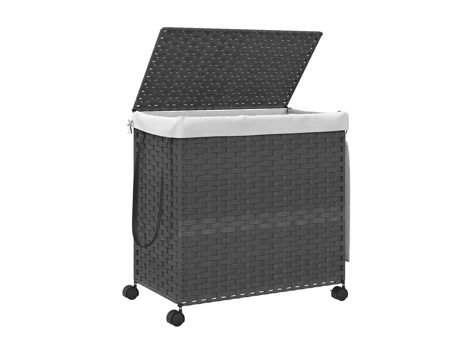 Panier à linge avec 2 sections gris 53x35x57 résine tressée
