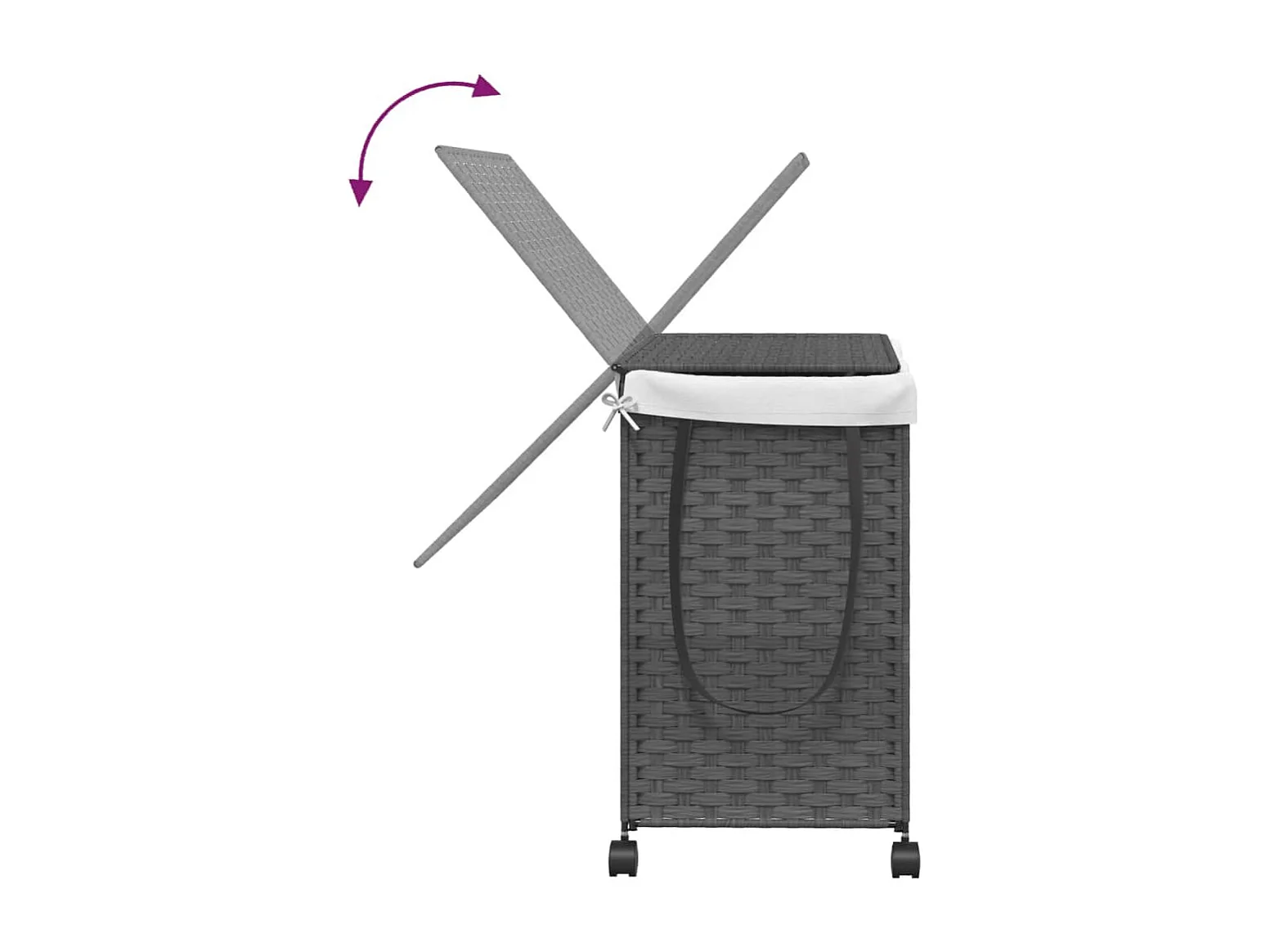 Panier à linge avec roulettes gris 60x35x60,5 cm résine tressée