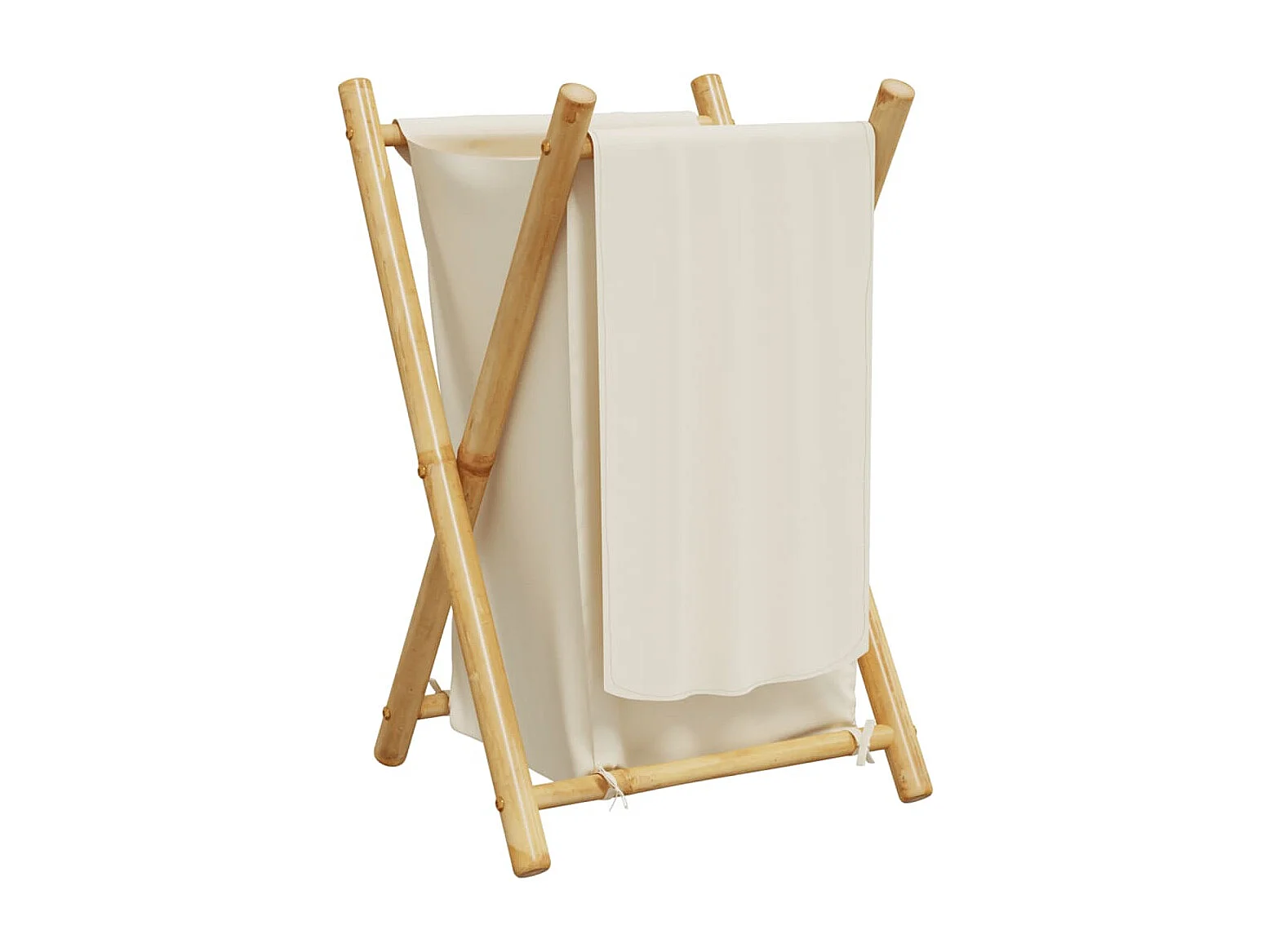 Panier à linge blanc crème 41,5x36x63,5 bambou