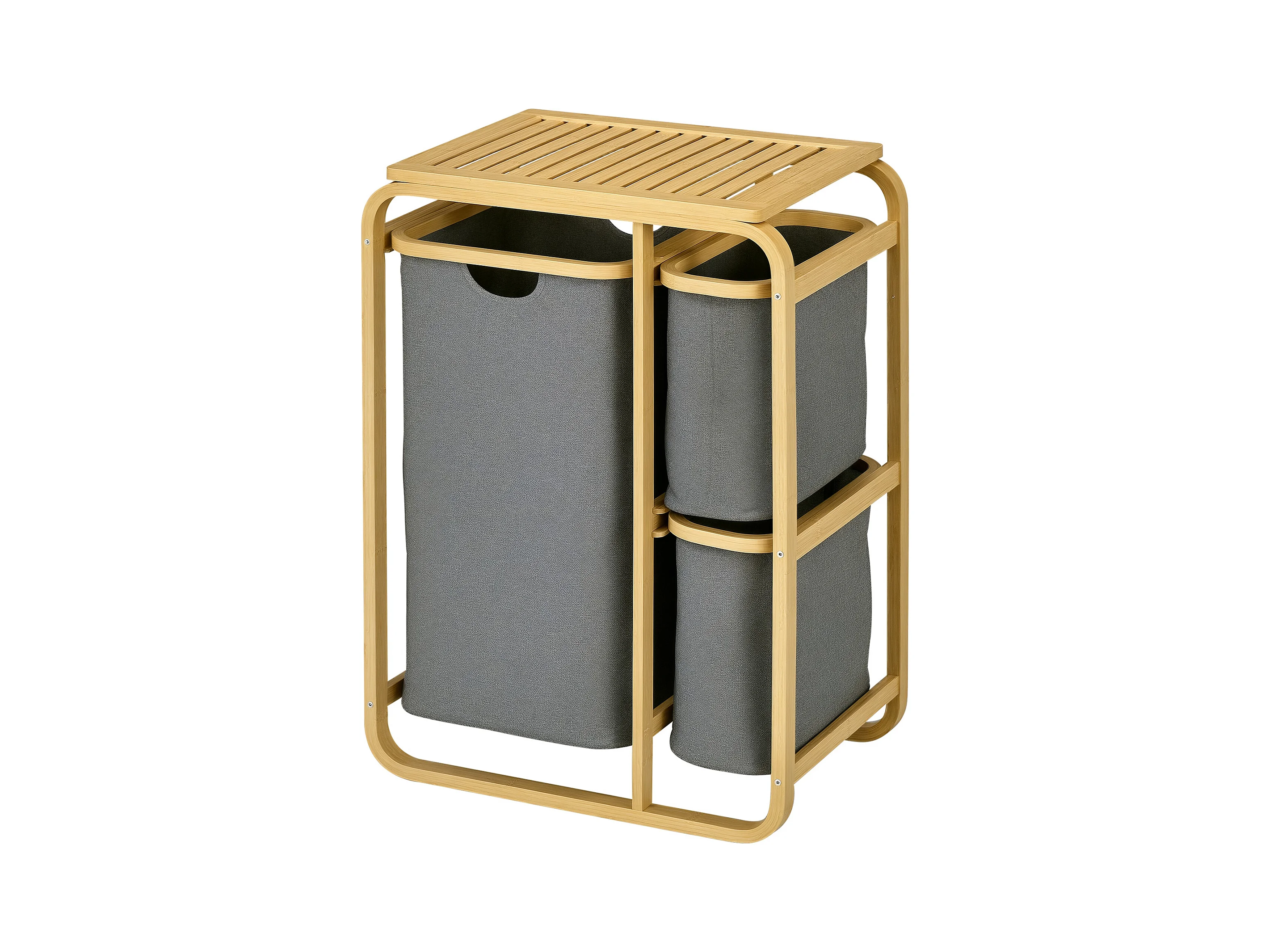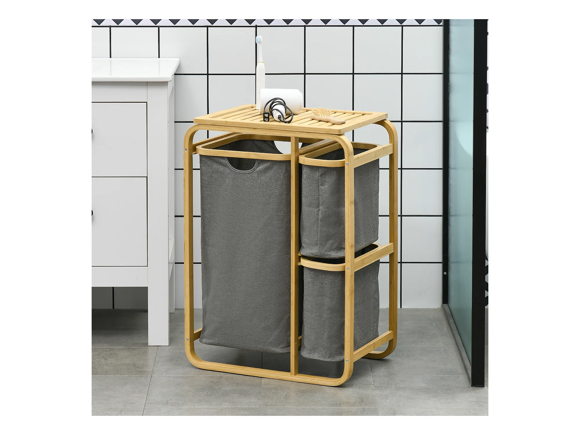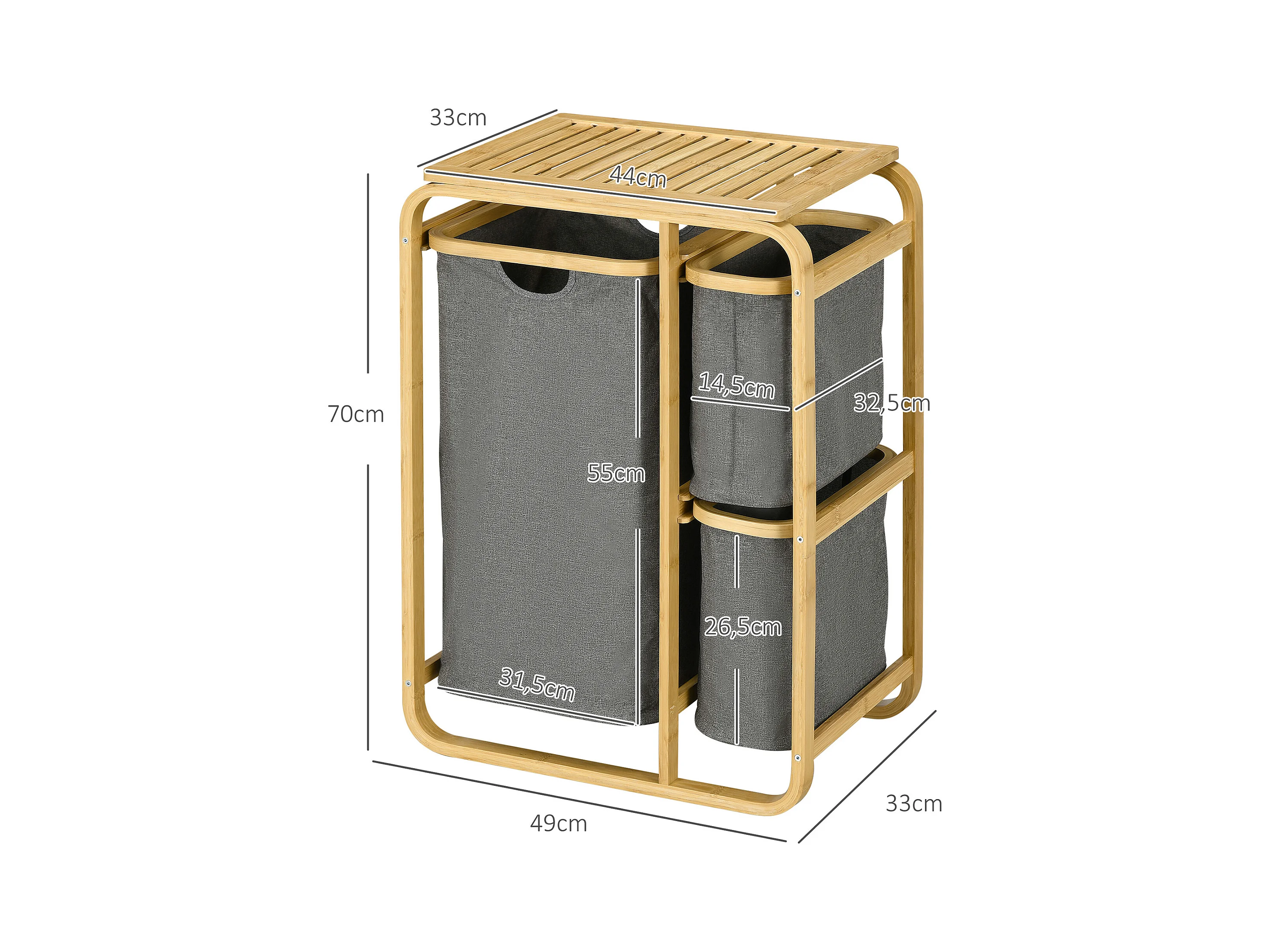 Panier à linge corbeille à linge bac linge sale 3 paniers amovibles bambou non-tissé gris