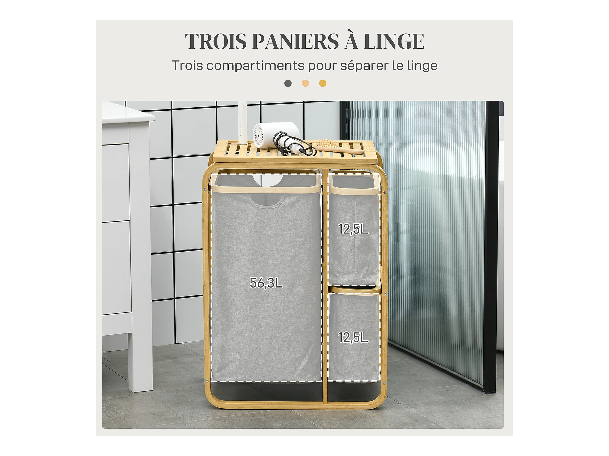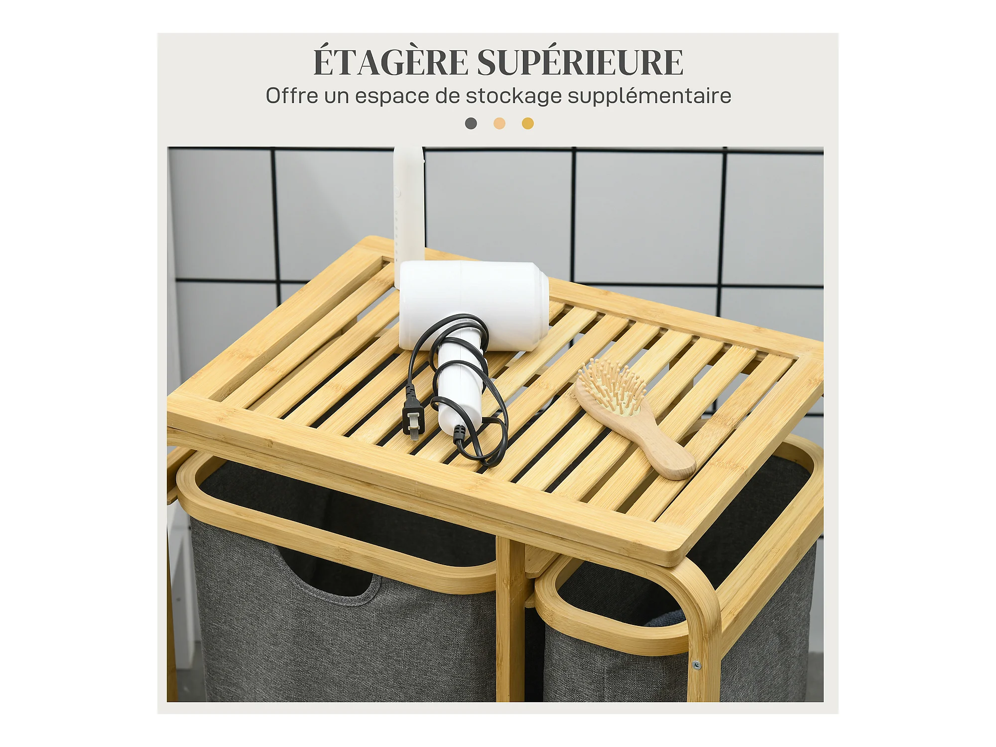 Panier à linge corbeille à linge bambou 2 paniers amovibles crème