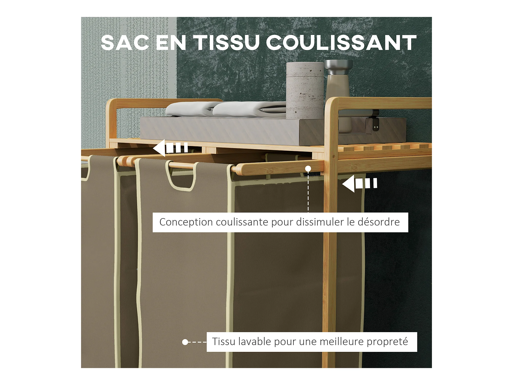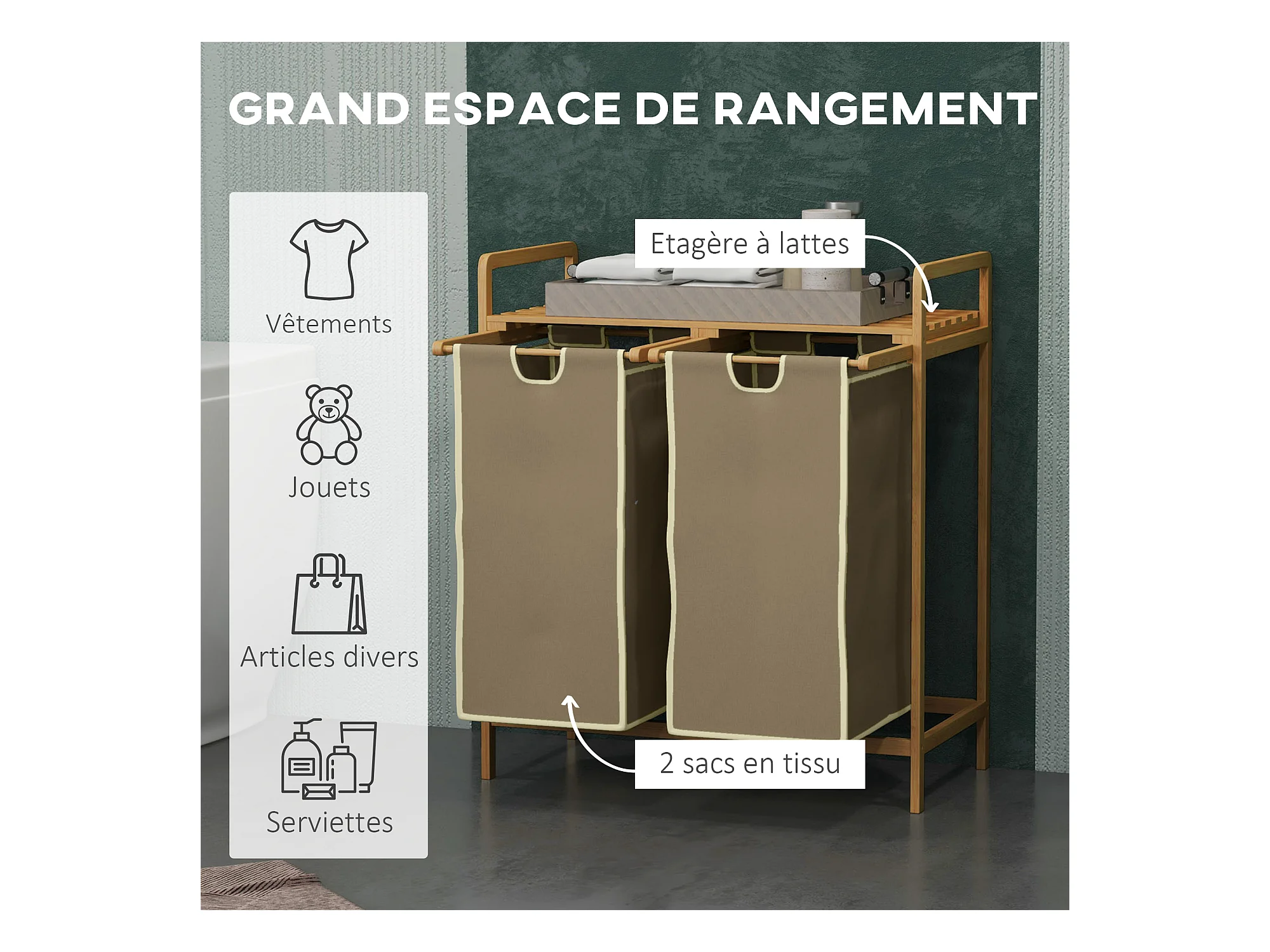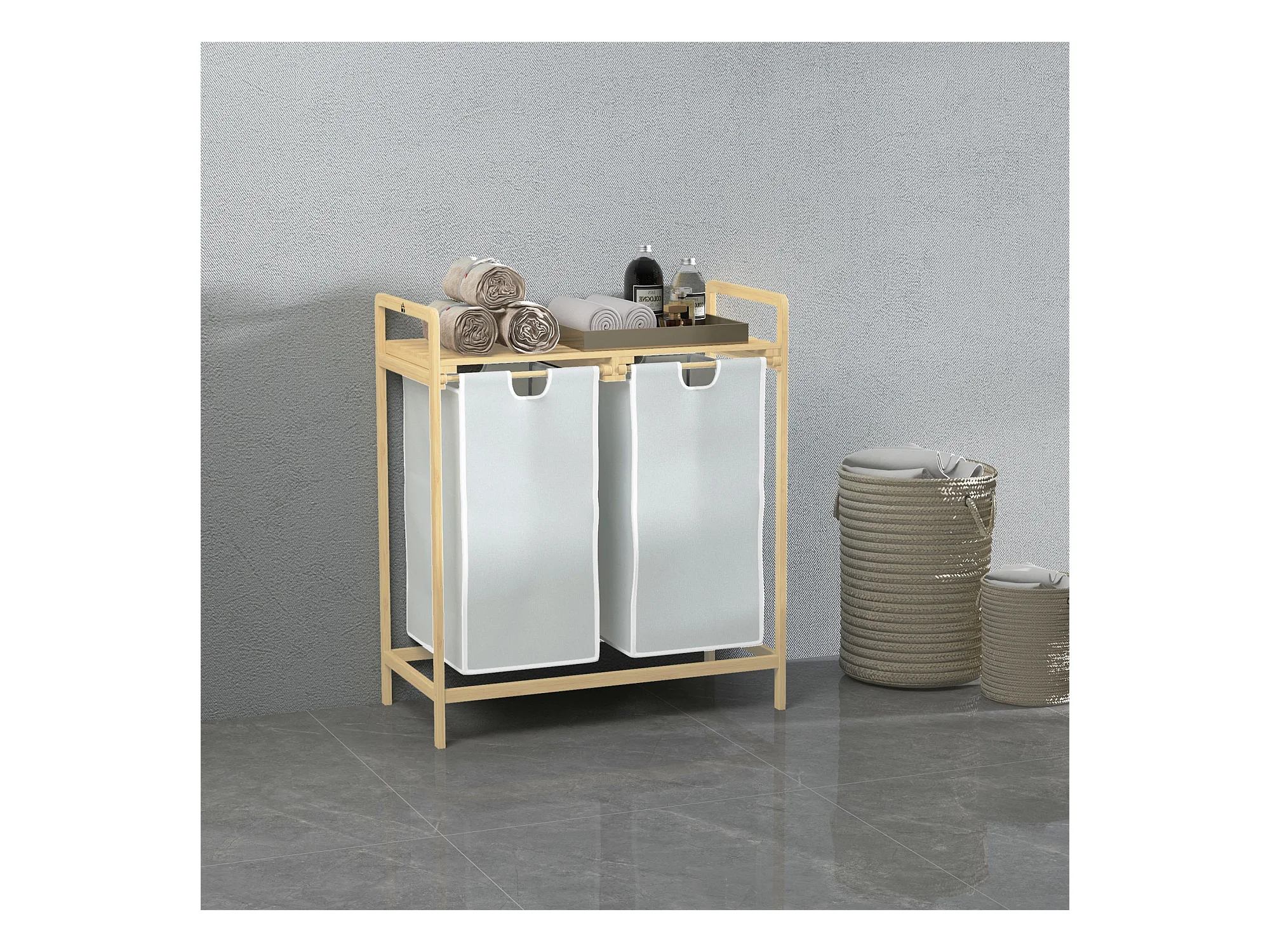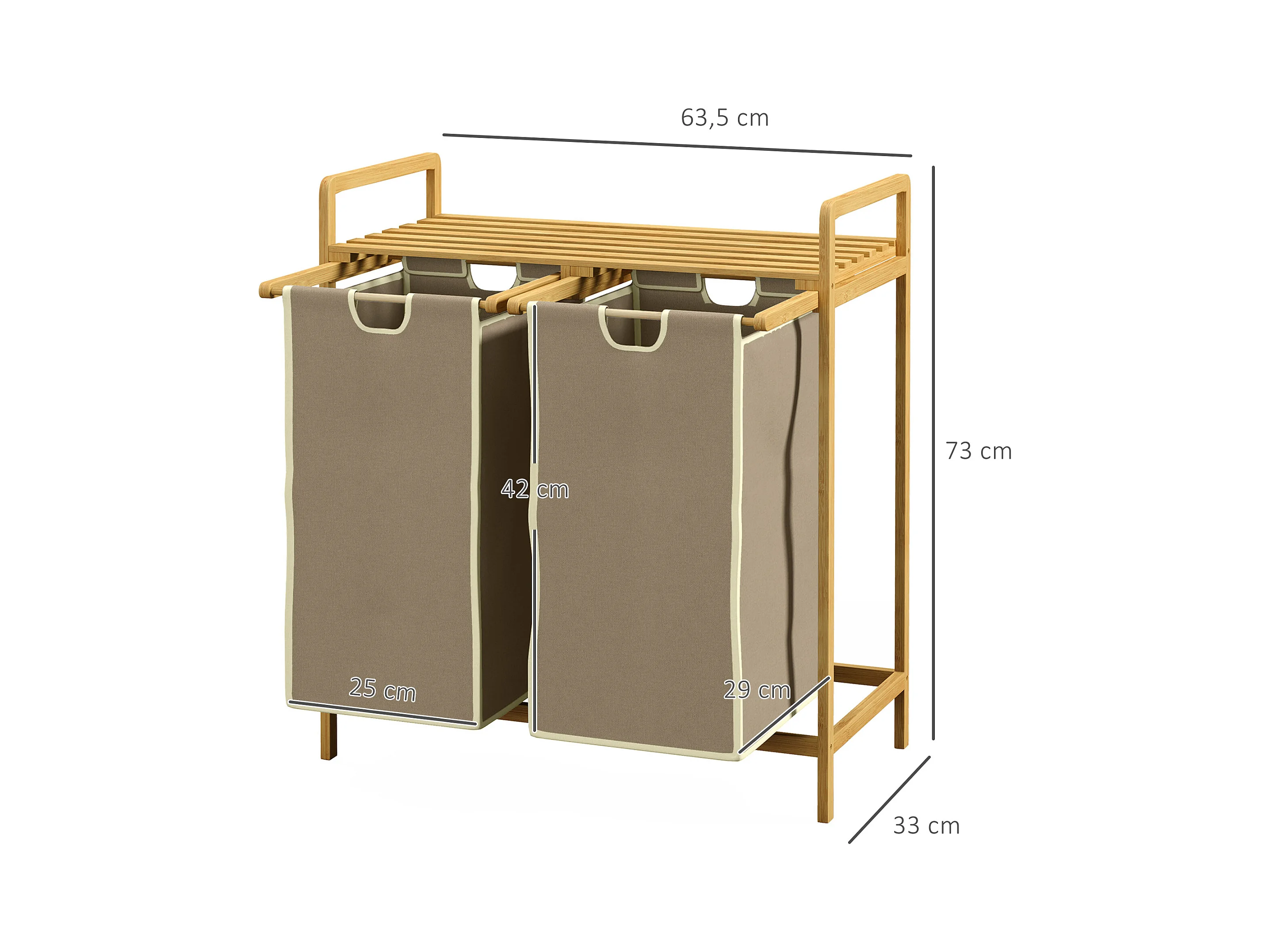 Panier à linge corbeille à linge bambou 2 paniers amovibles crème