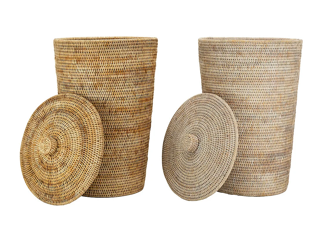 Panier à linge en rotin patiné blanc