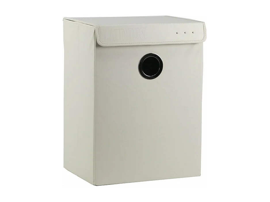 Panier à linge pliant carré en tissu blanc cassé avec couvercle - BASKET