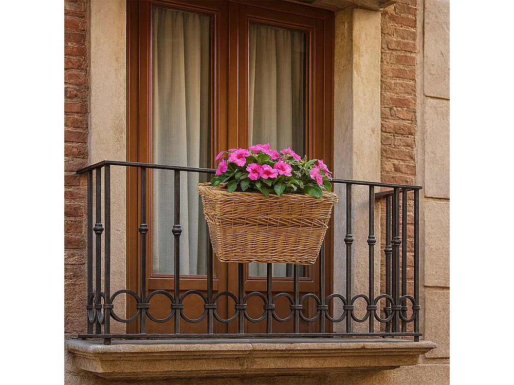 Panier à vélo rectangulaire en osier avec poignée tressée