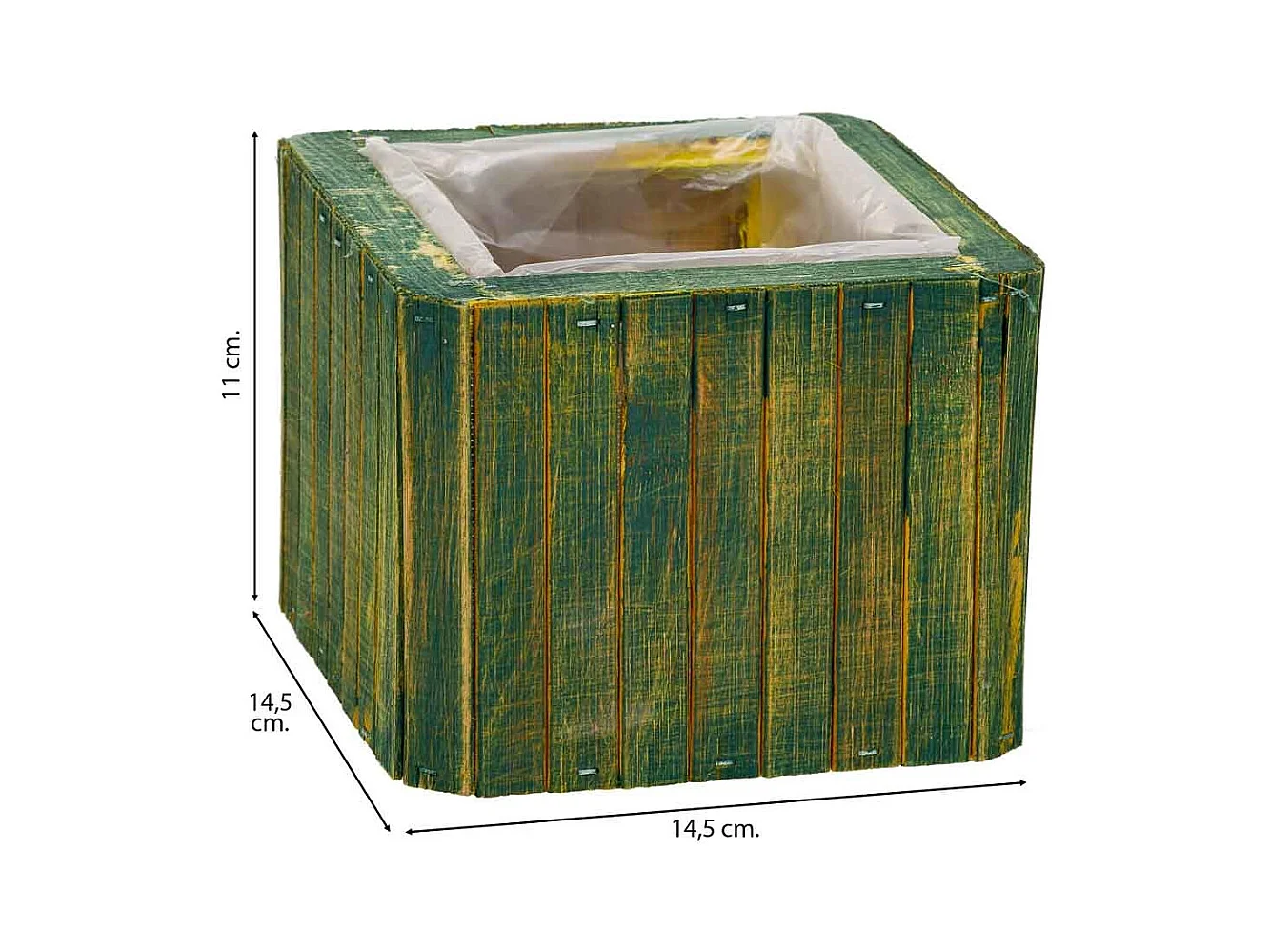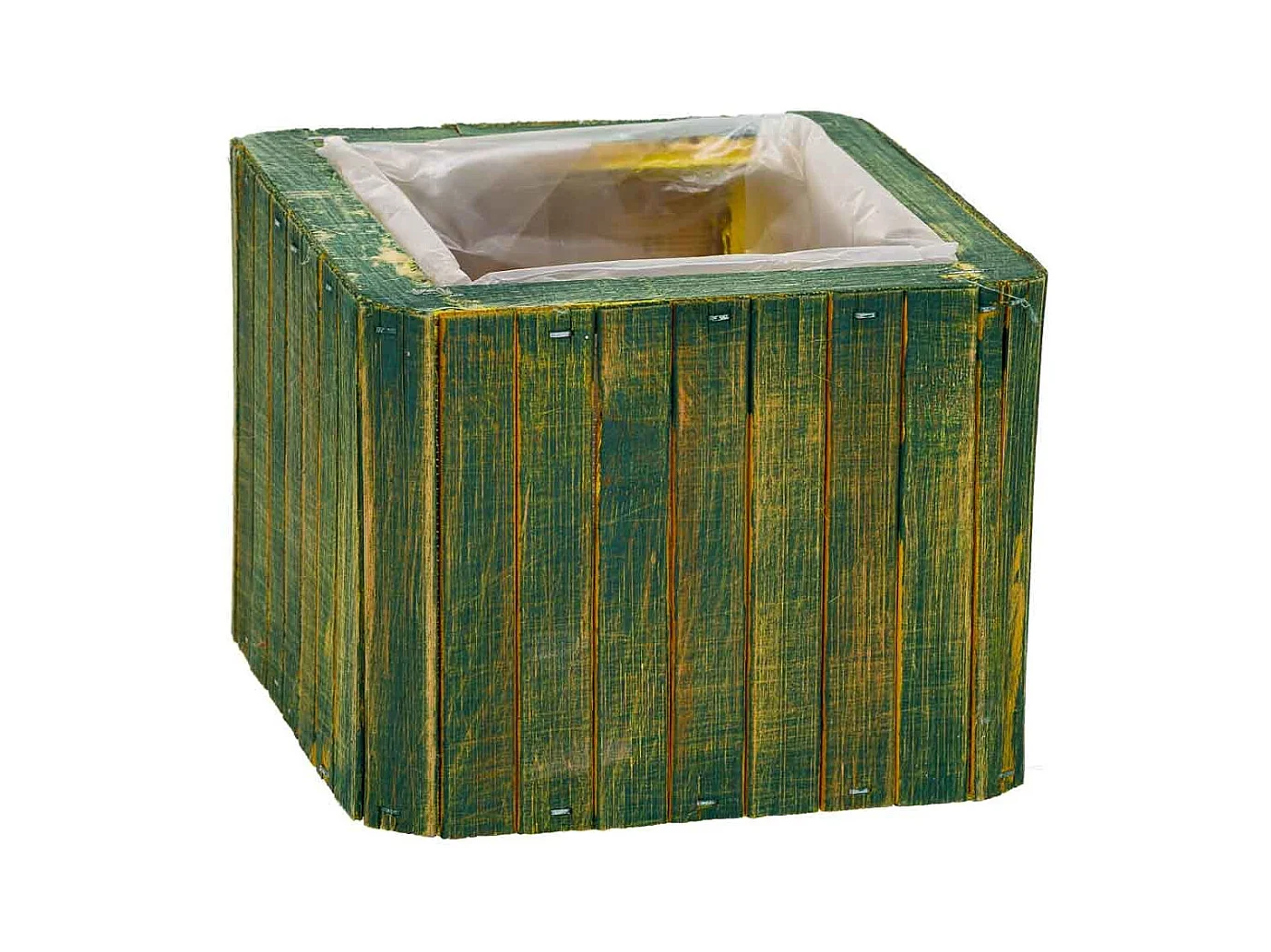 Panier carré en bois vert 14.5x14.5x11h