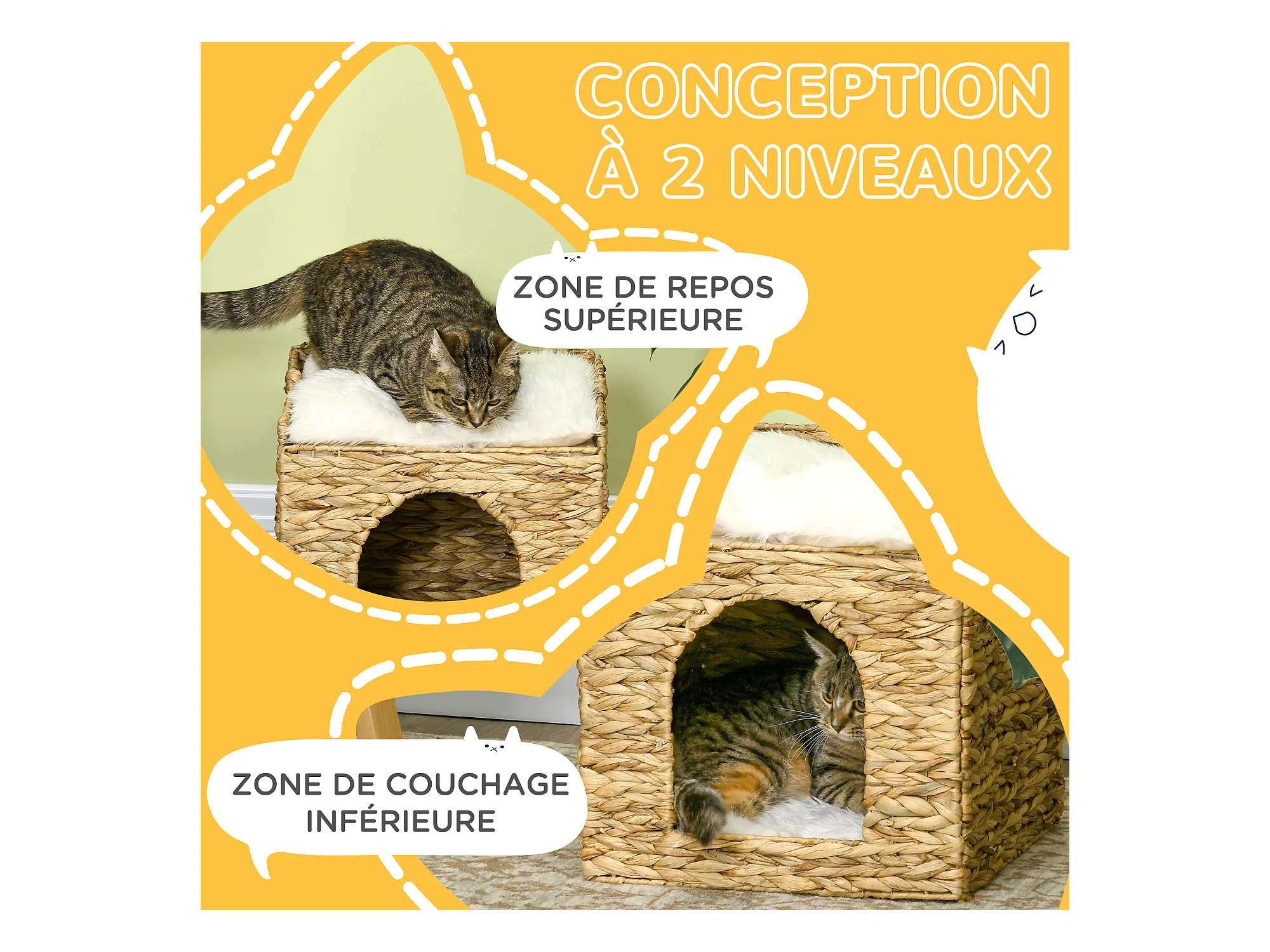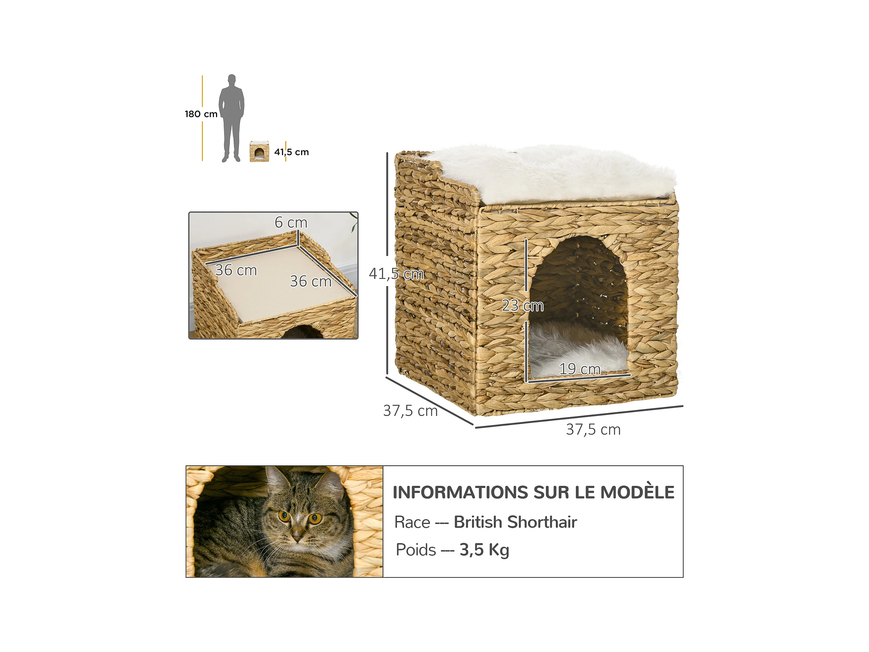 Panier chat lit chat cosy grand confort dim. Ø 37 x 41H cm coussins doux inclus jacinthe d'eau