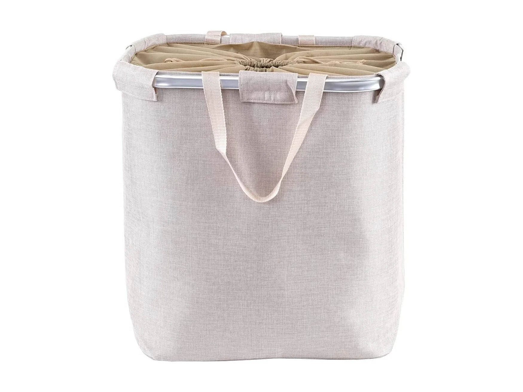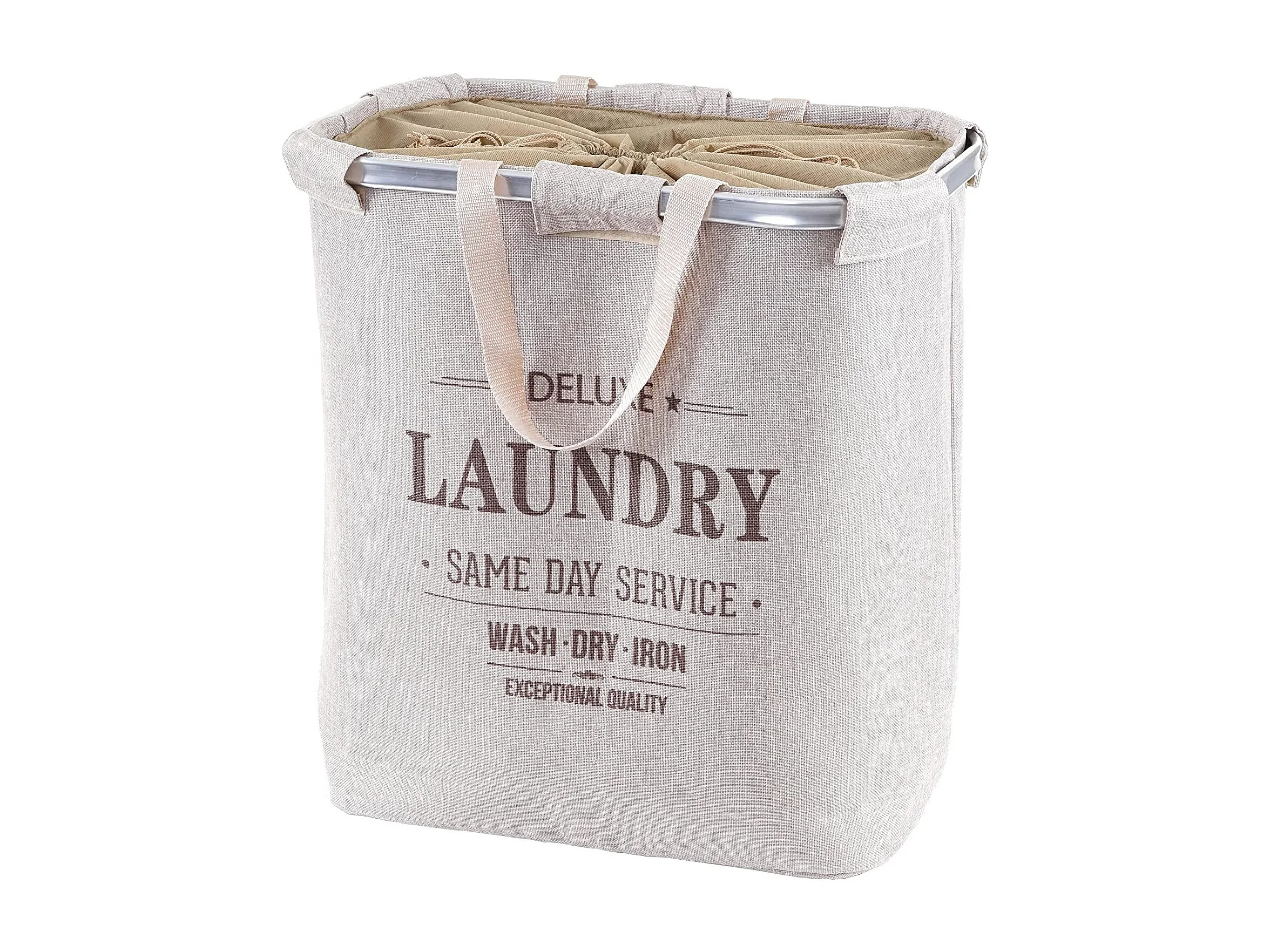 Panier à linge corbeille à linge bac à linge 100 L 2 compartiments couvercle sac amovible 2 poignées tissu bambou
