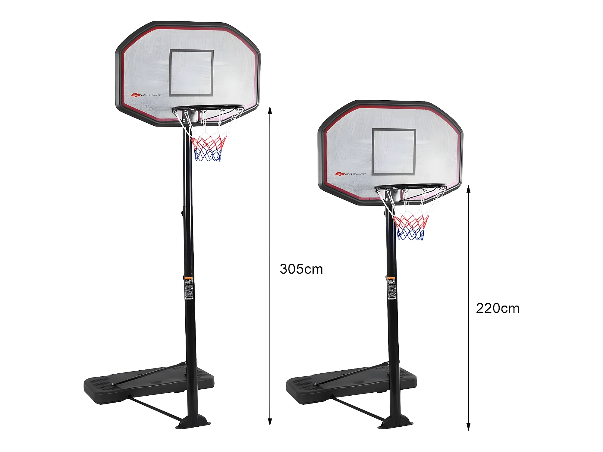 Panier de basket-ball sur pied 97x65x360cm hauteur réglable
