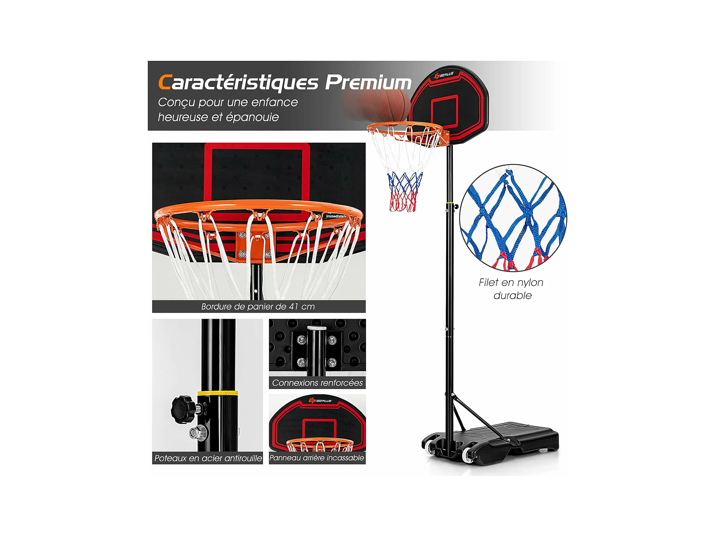 Panier de basket-ball sur pied 97x65x360cm hauteur réglable