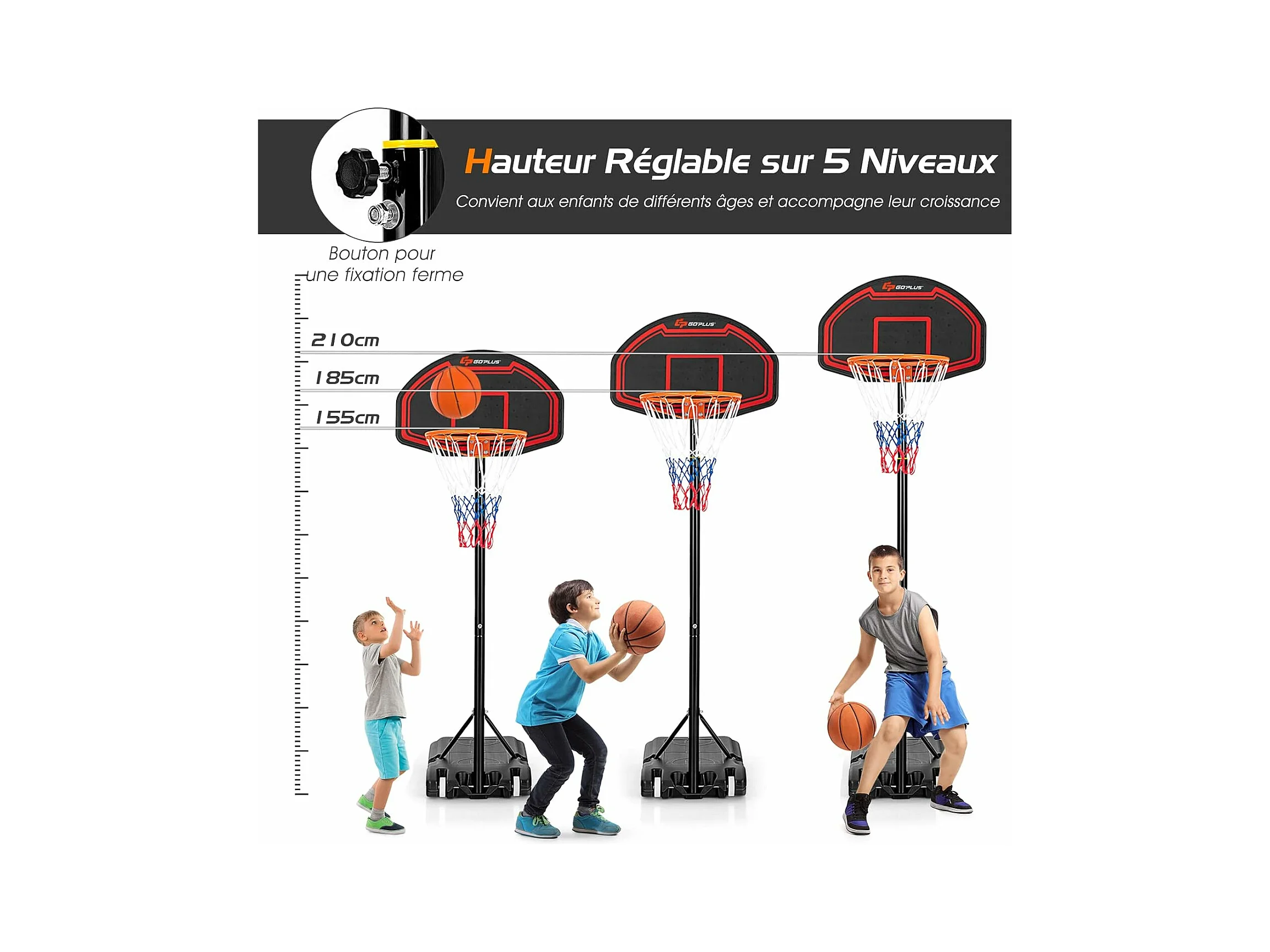 Panier de Basket sur Pied-Hauteur Réglable 178-208cm-Base de Lestage sur Roulettes en Acier PE