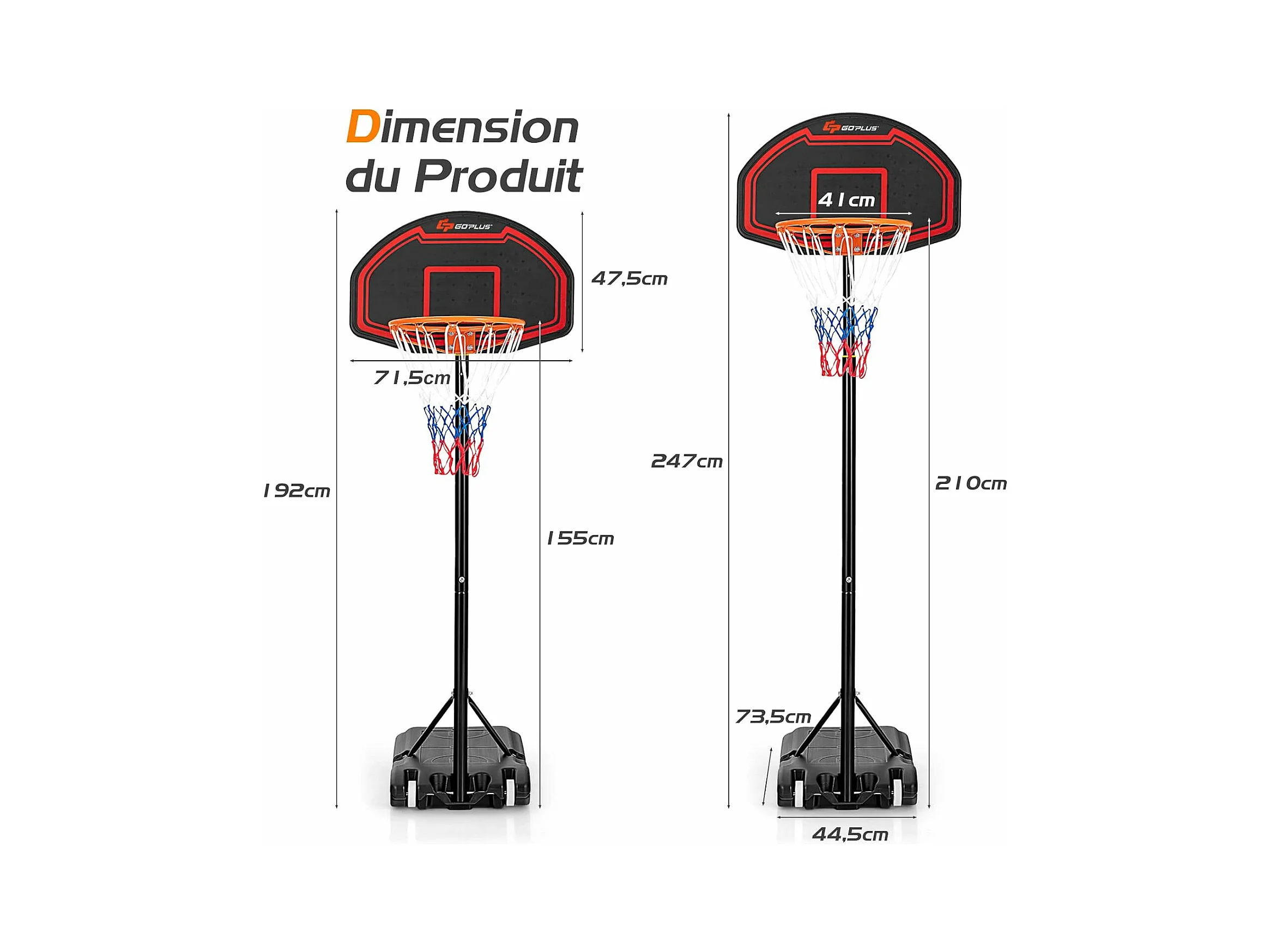 Panier de Basket-Ball sur Pied Hauteur Réglable 192–247 CM Support Portable de Basketball Sur Roulettes pour Enfant/Adultes