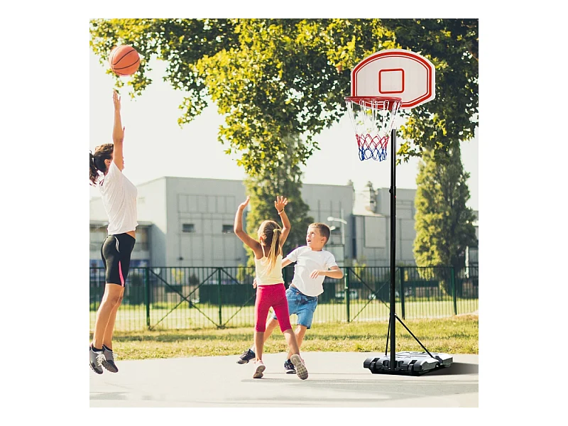 Panier de basket extérieur réglable et portable, métal, noir et blanc, avec roues et base remplissable (75.5x71x250 cm)