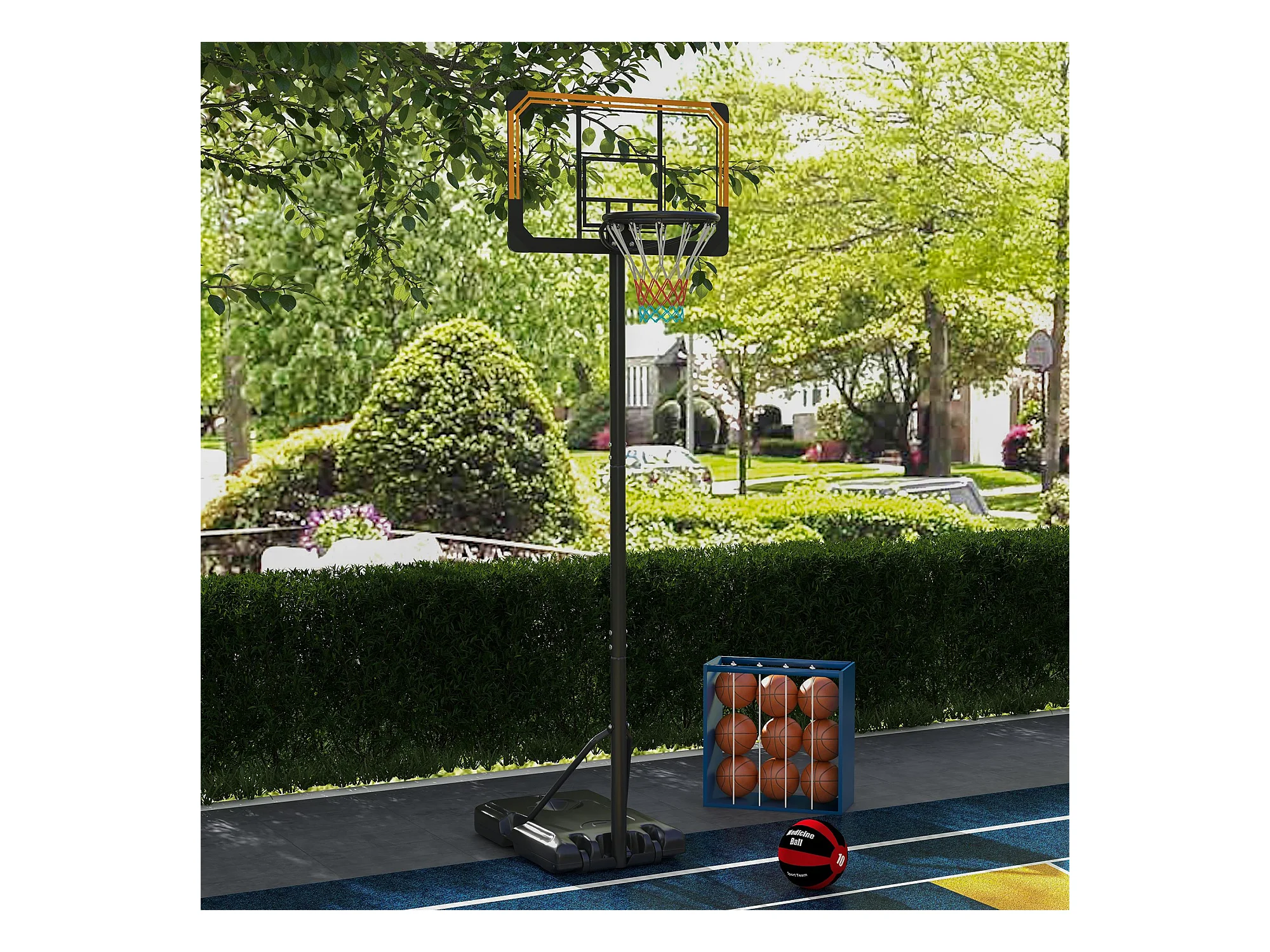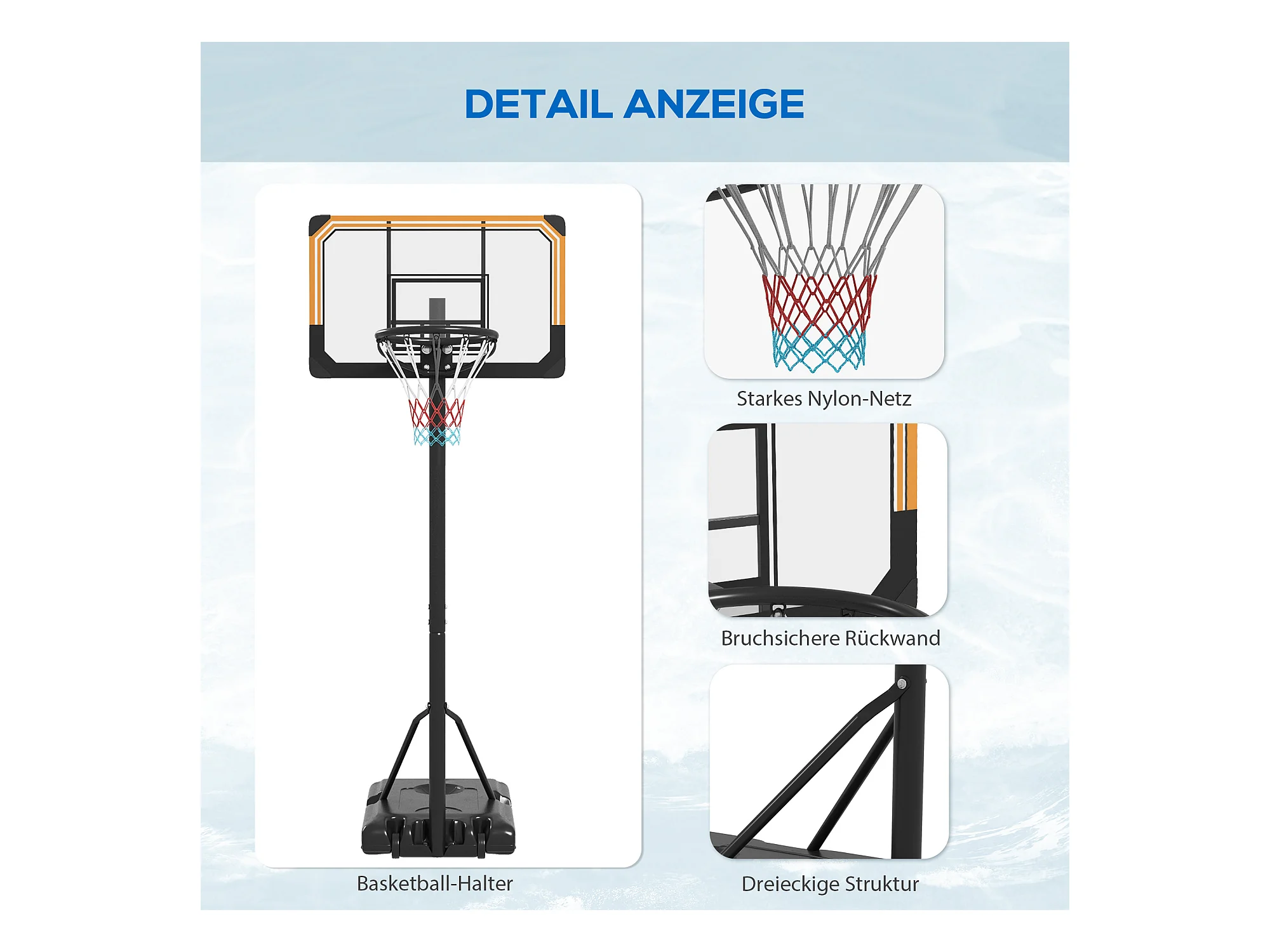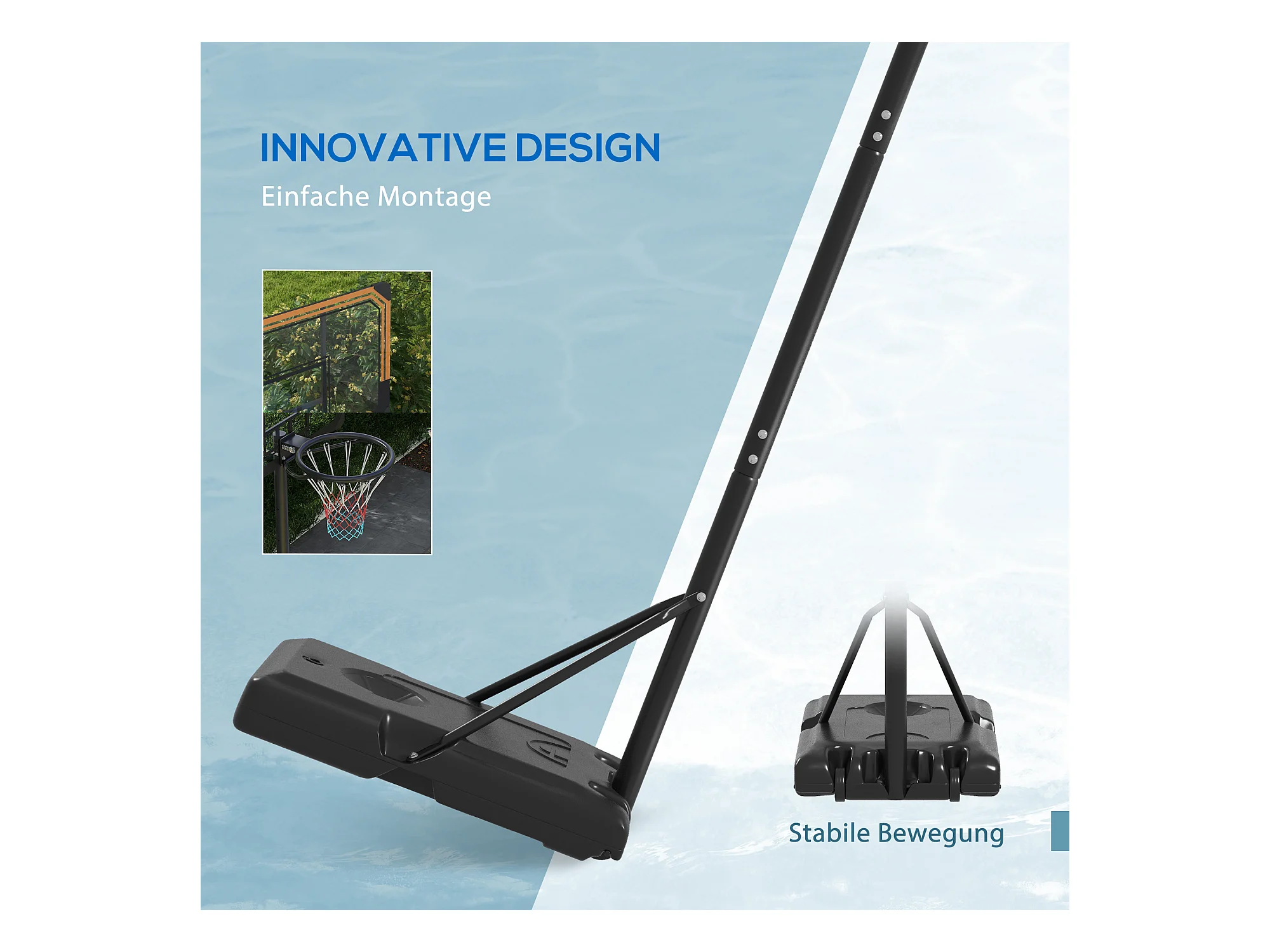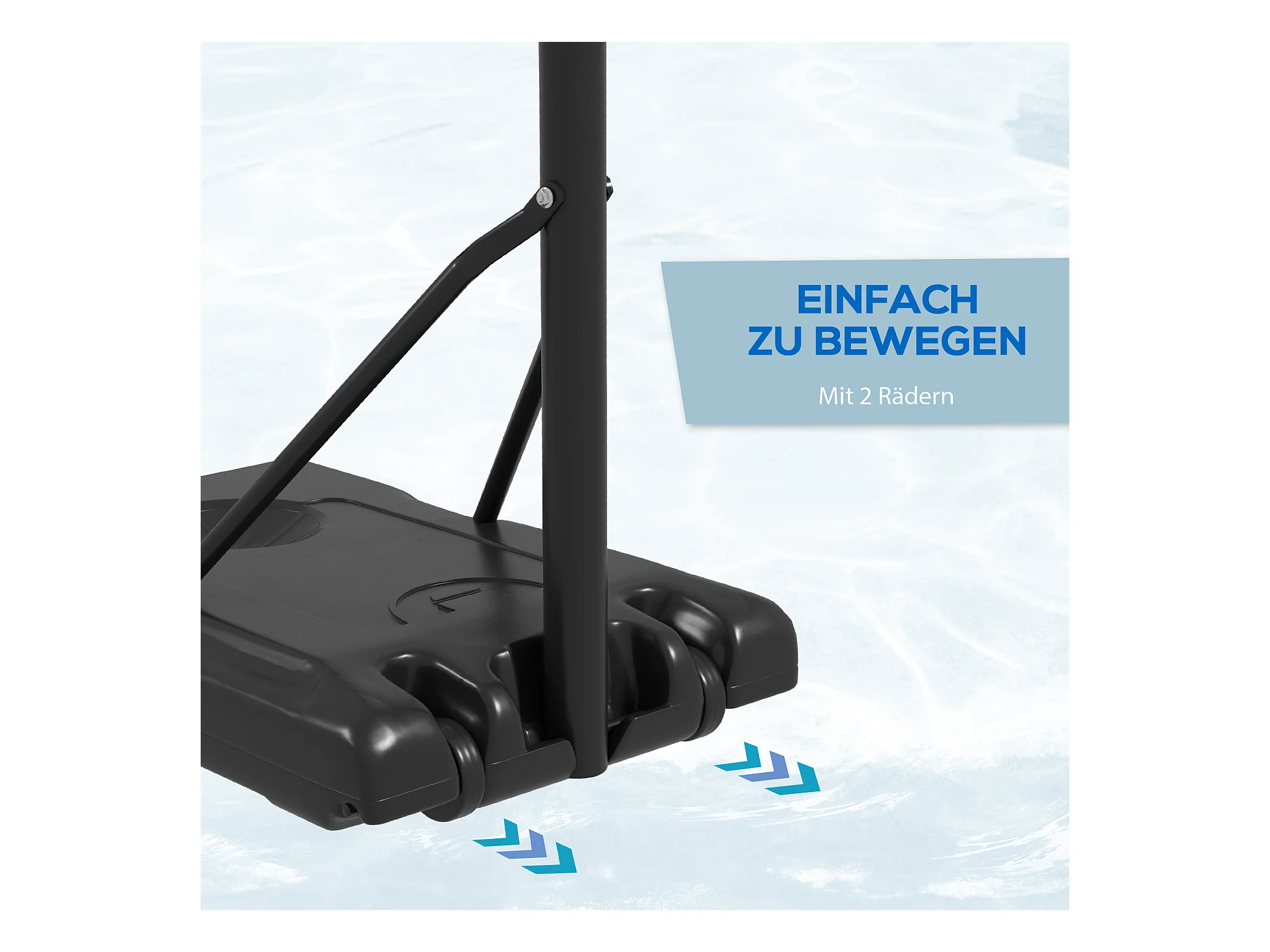 Panier de basket réglable en hauteur avec support, acier, noir, roues incluses (71x74x264 cm)
