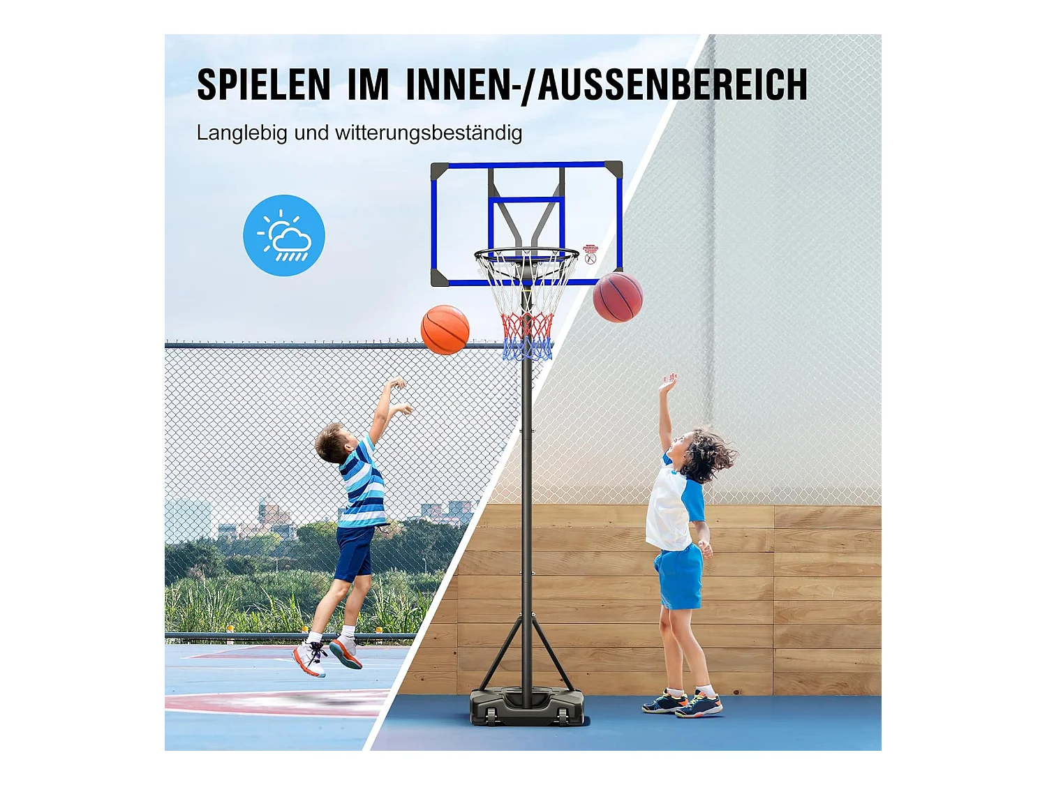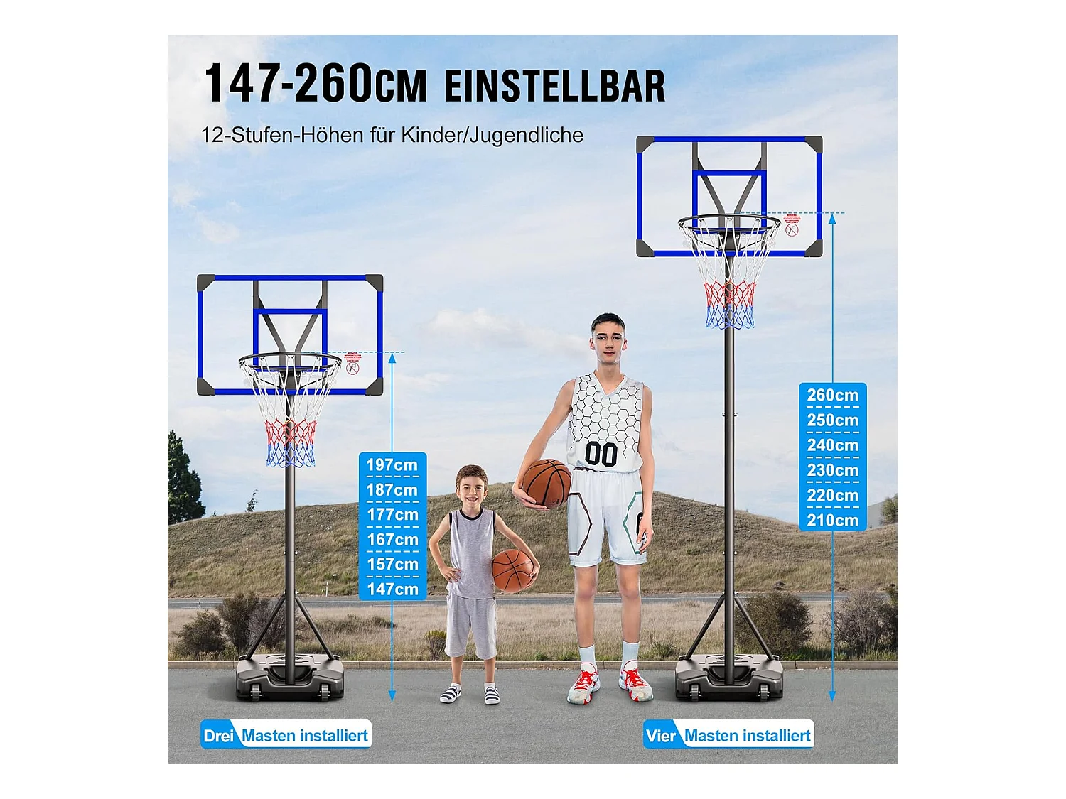 Panier de Basketball Extérieur avec Support, Hauteur Réglable 147-260 cm, Base Élargie et Roues, Usage Intérieur et Extérieur