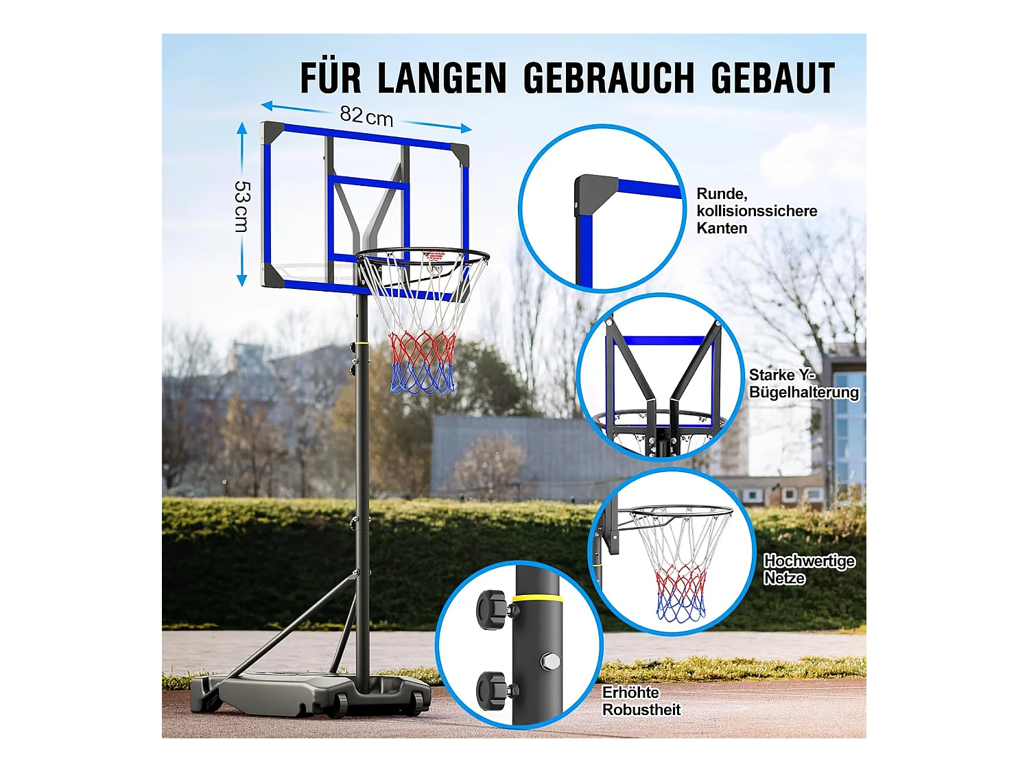 YOLEO Panier de Basketball pour Enfants, Réglable en Hauteur 110-210 cm, Support de Basketball Portable avec Roues