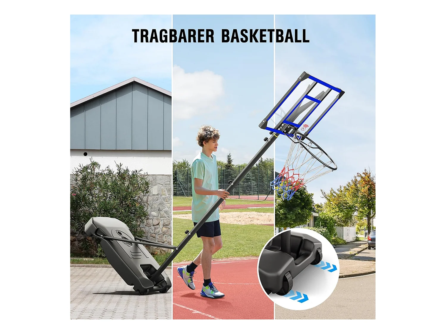 Panier de basket-ball sur pied avec base de lestage sur roulettes hauteur réglable 2,93-3,5 m acier PC noir