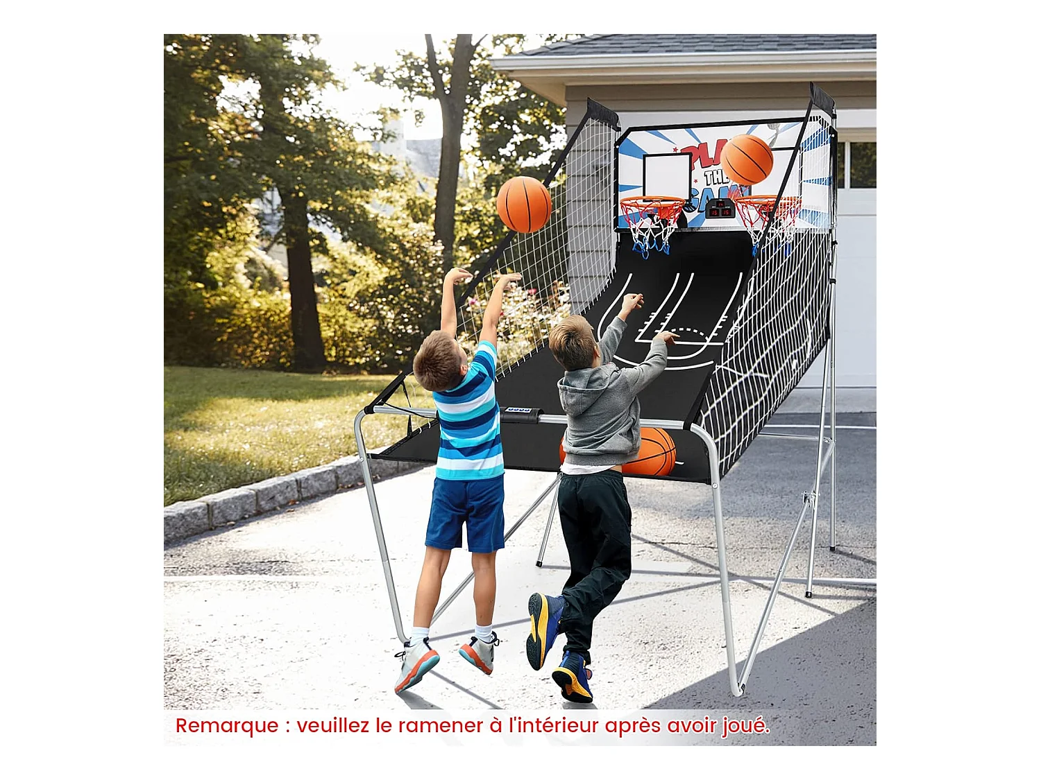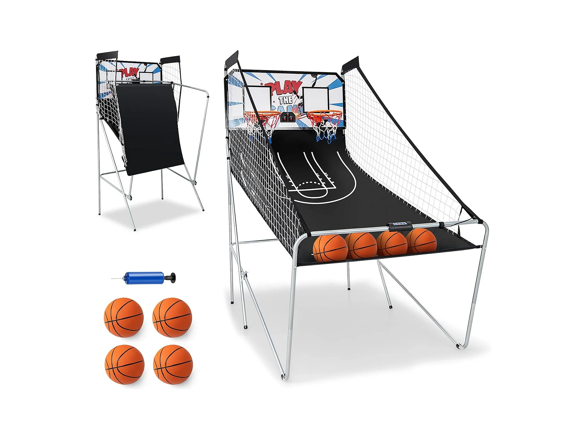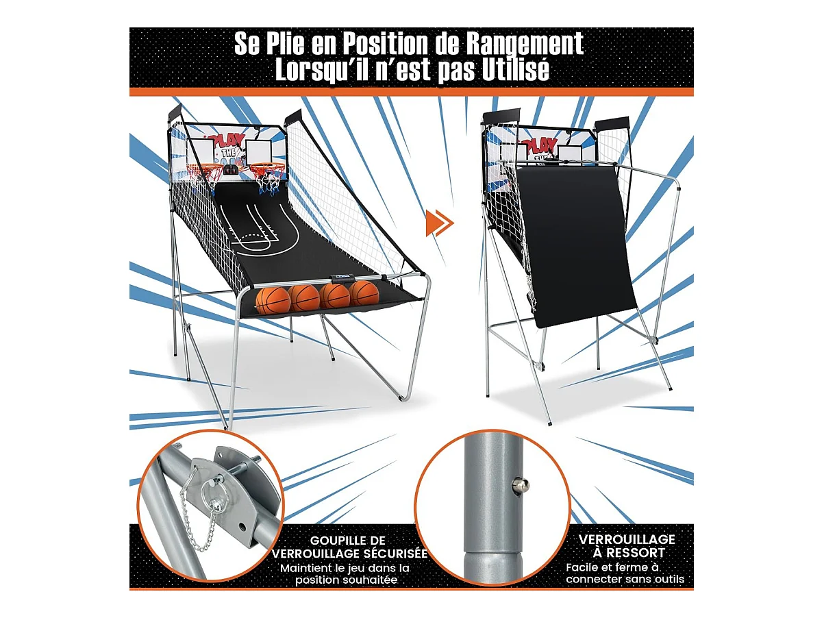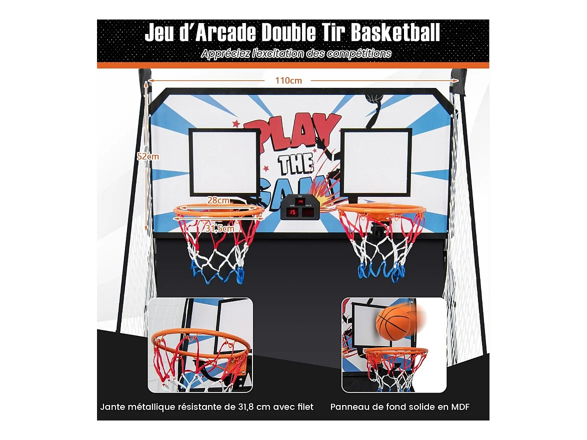 Panier de Basketball/Jeu d’Arcade de Basket-ball avec Double Shootout et Panier de Basket 4 Ballons et 1 Pompe de Gonflage Rampe de Retour