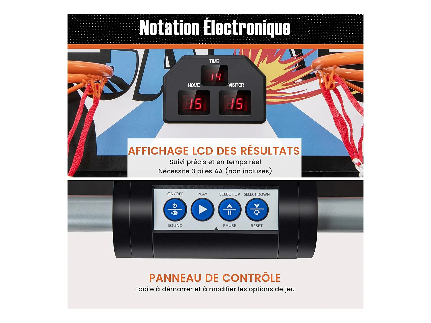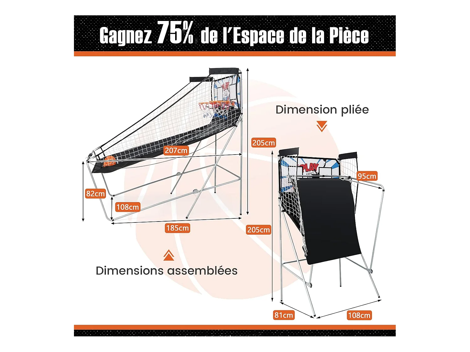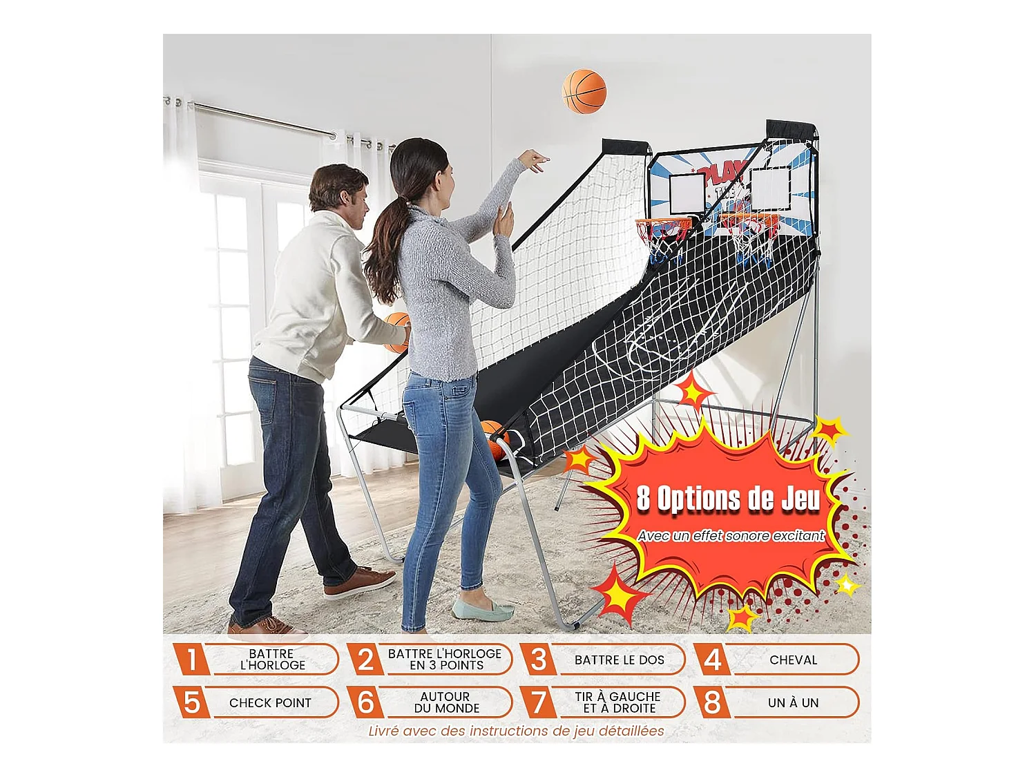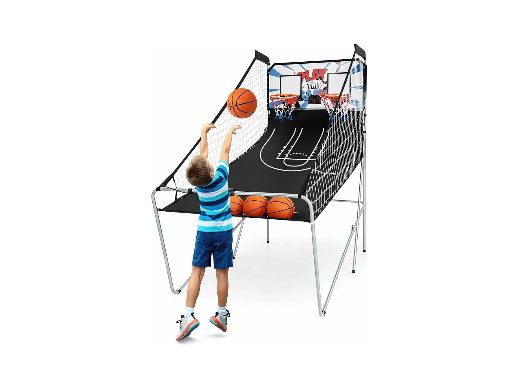 Panier de Basketball/Jeu d’Arcade de Basket-ball avec Double Shootout et Panier de Basket 4 Ballons et 1 Pompe de Gonflage Rampe de Retour