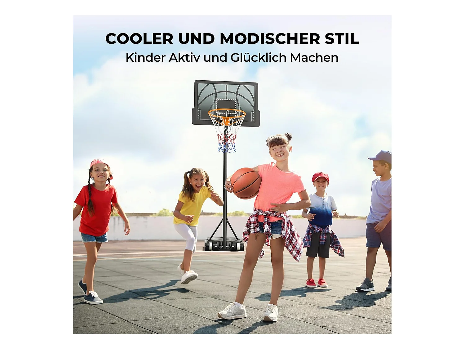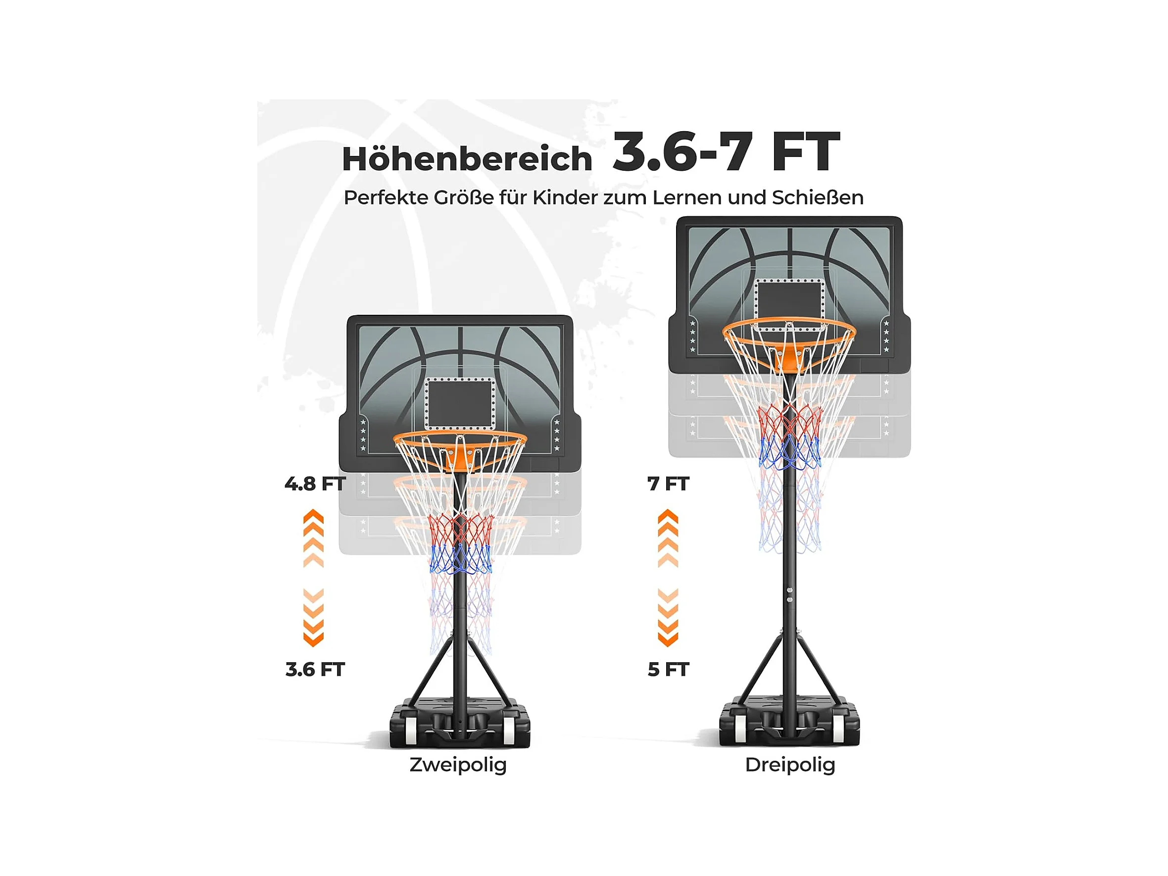 Panier de Basket-ball SucceBuy Panier de Basket-ball pour Enfants, Support Portable à 4 Cerceaux avec Hauteurs Réglables