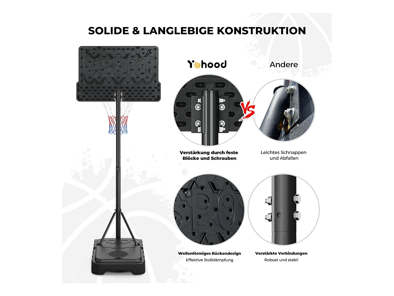 Panier de Basketball Yohood Extérieur, Hauteur Réglable de 135 à 305 cm, Panier de Basket pour Enfants, Adolescents, Adultes