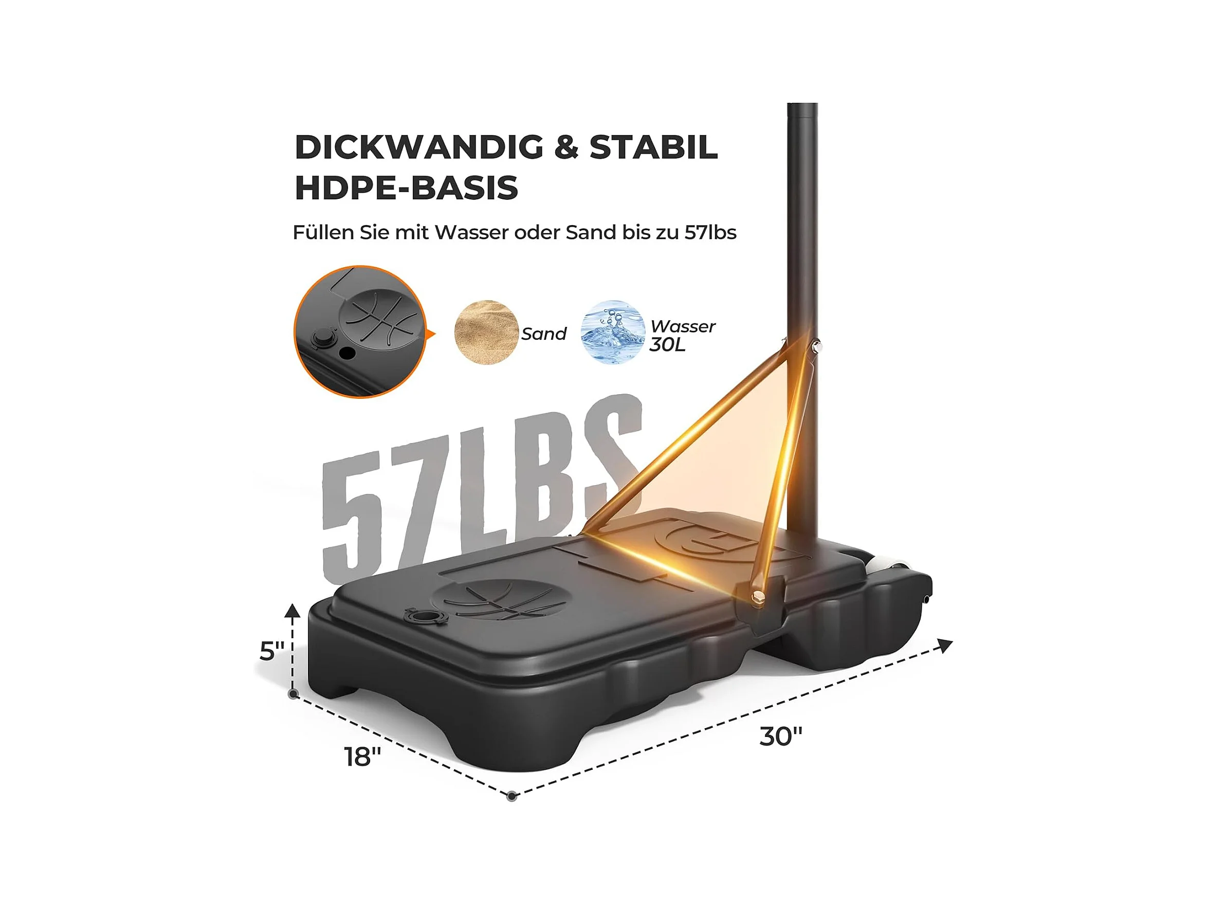 Panier de basket sur pied hauteur réglable 2,35-3,05 m - roulettes, base de lestage - acier PE noir