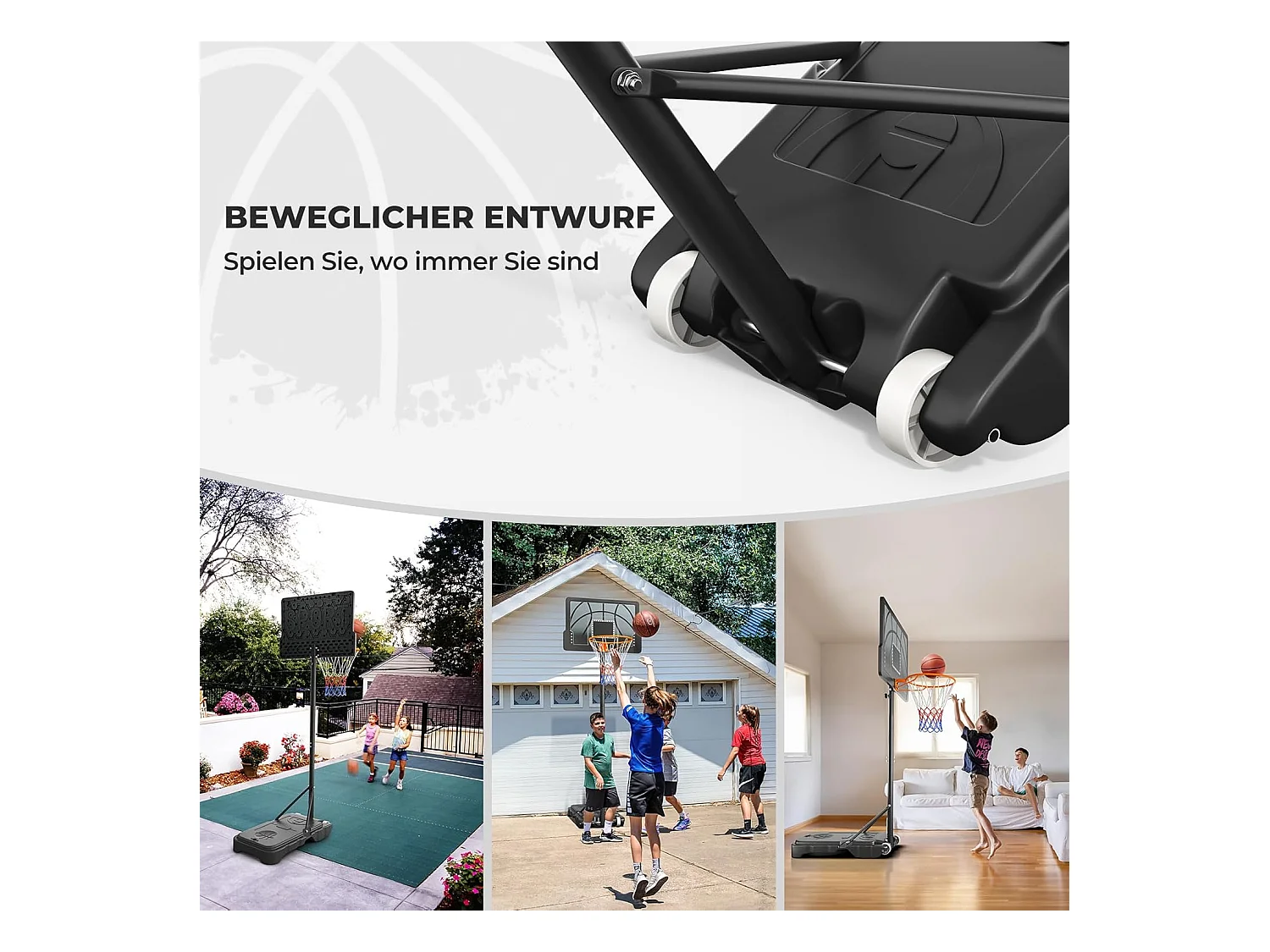 Panier de basket-ball sur pied avec base de lestage sur roulettes hauteur réglable 2,93-3,5 m acier PC noir