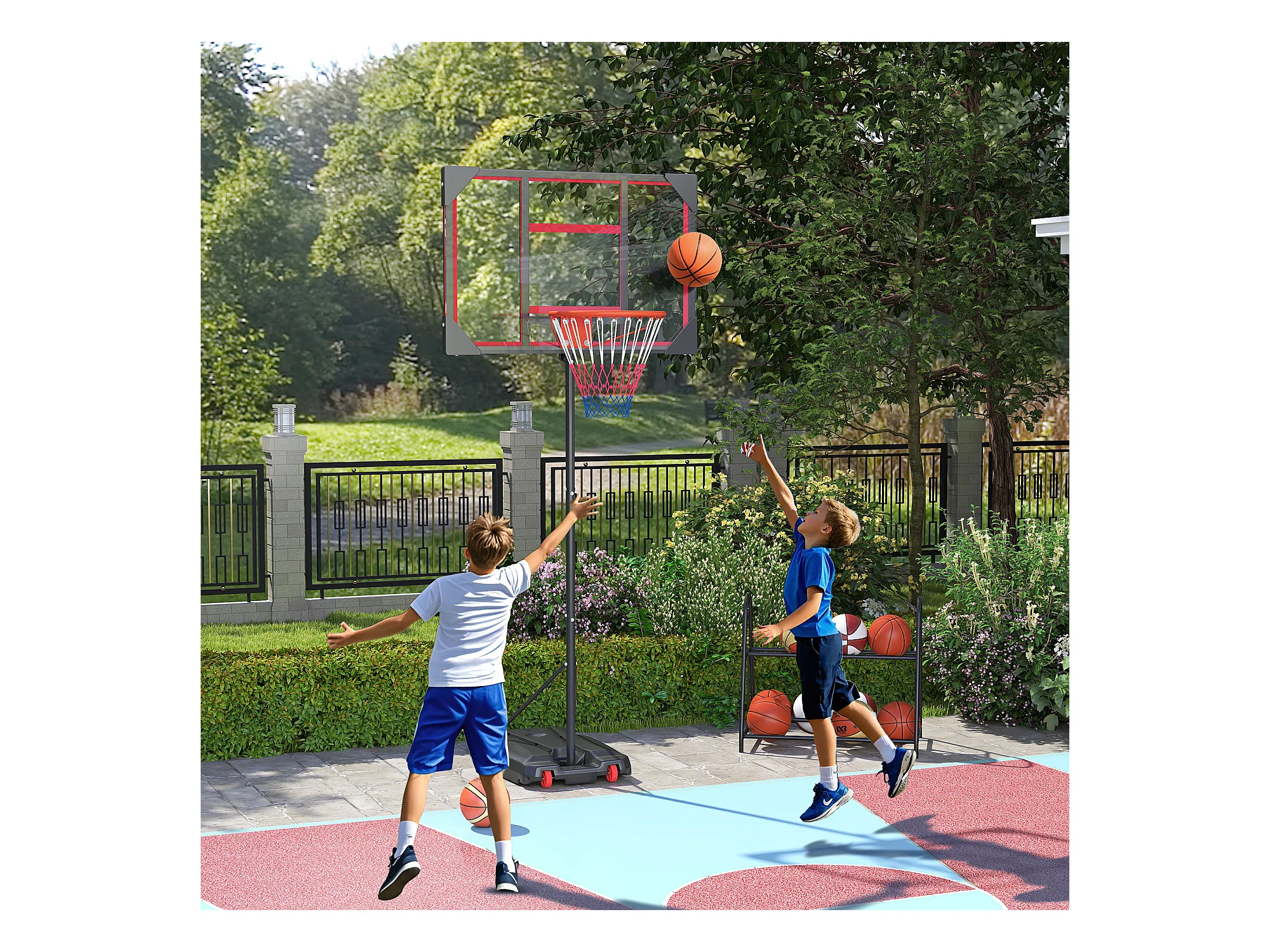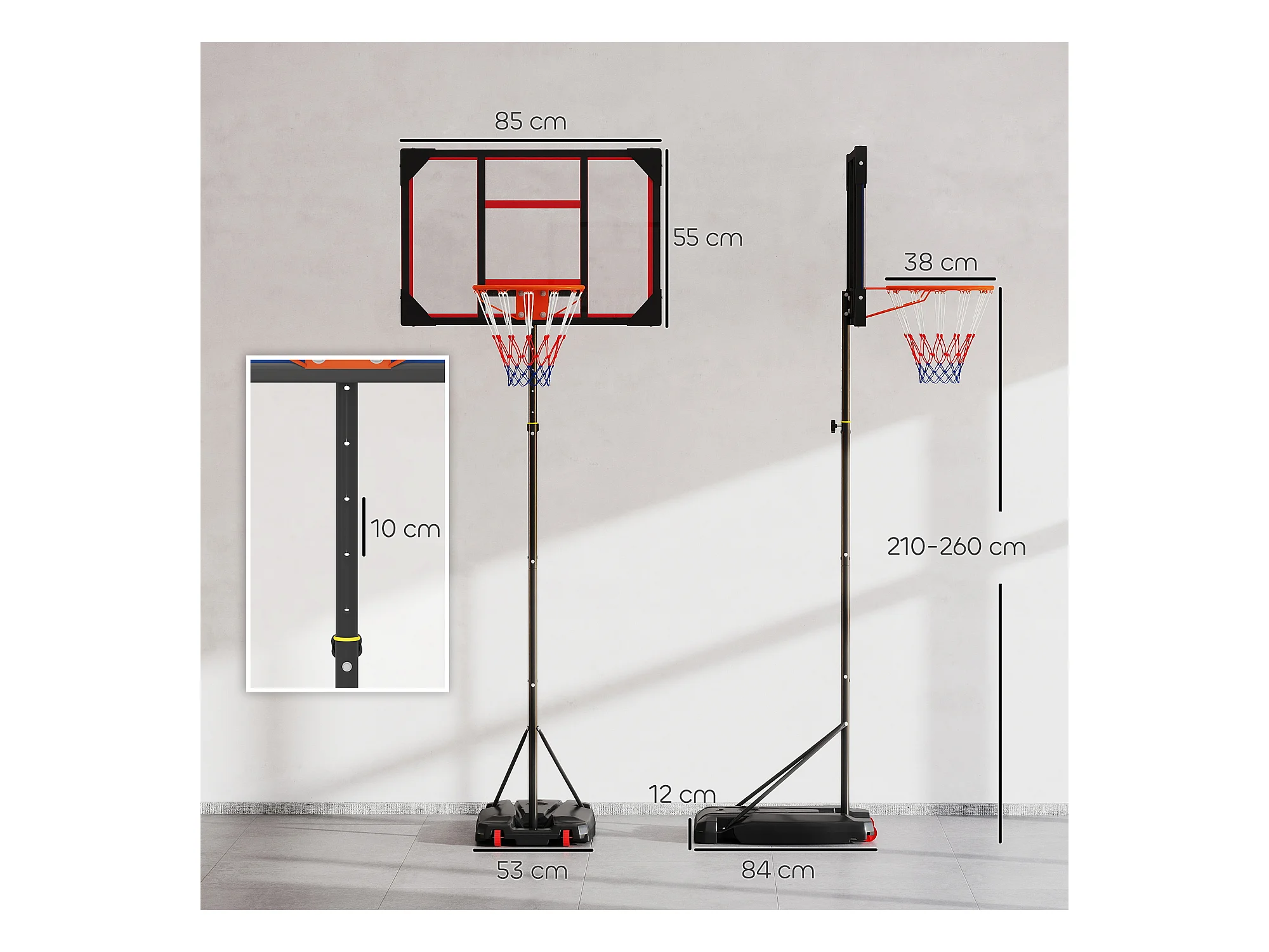 Panier de basket réglable pour enfants, hauteur ajustable 200-260 cm, avec roues et base lestée, plastique, rouge (83x2x310 cm)