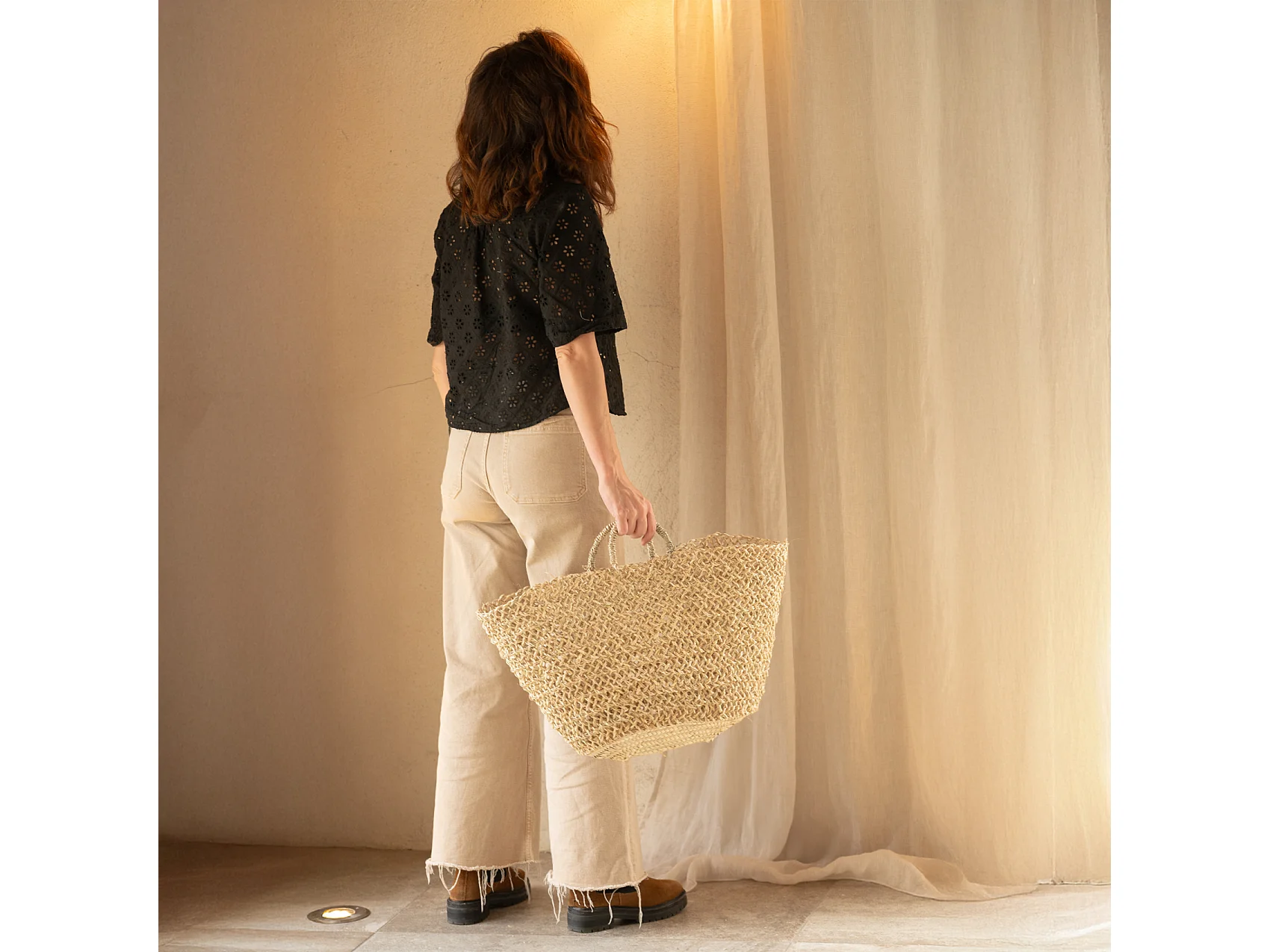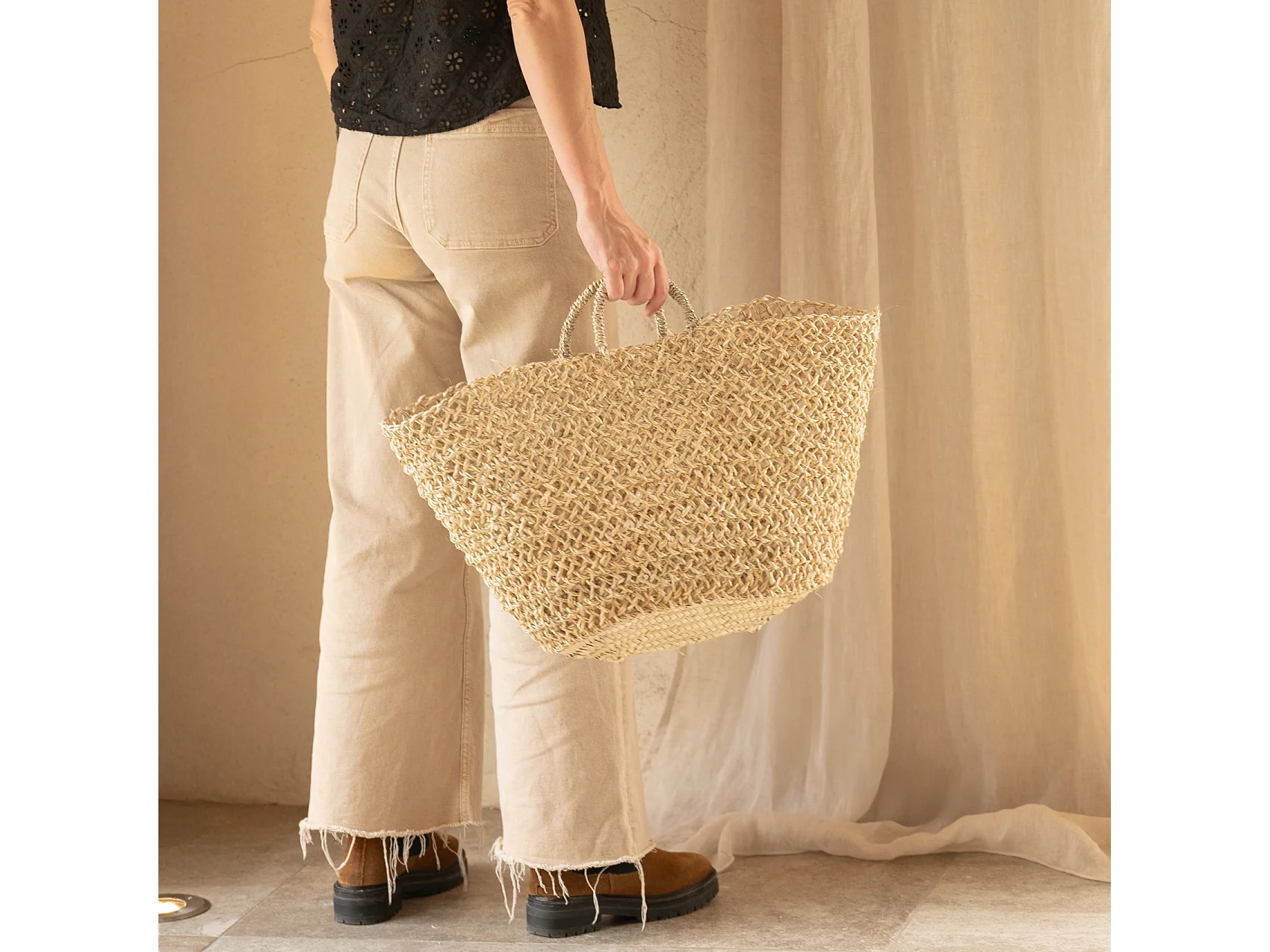 Panier de marché ajouré bohème