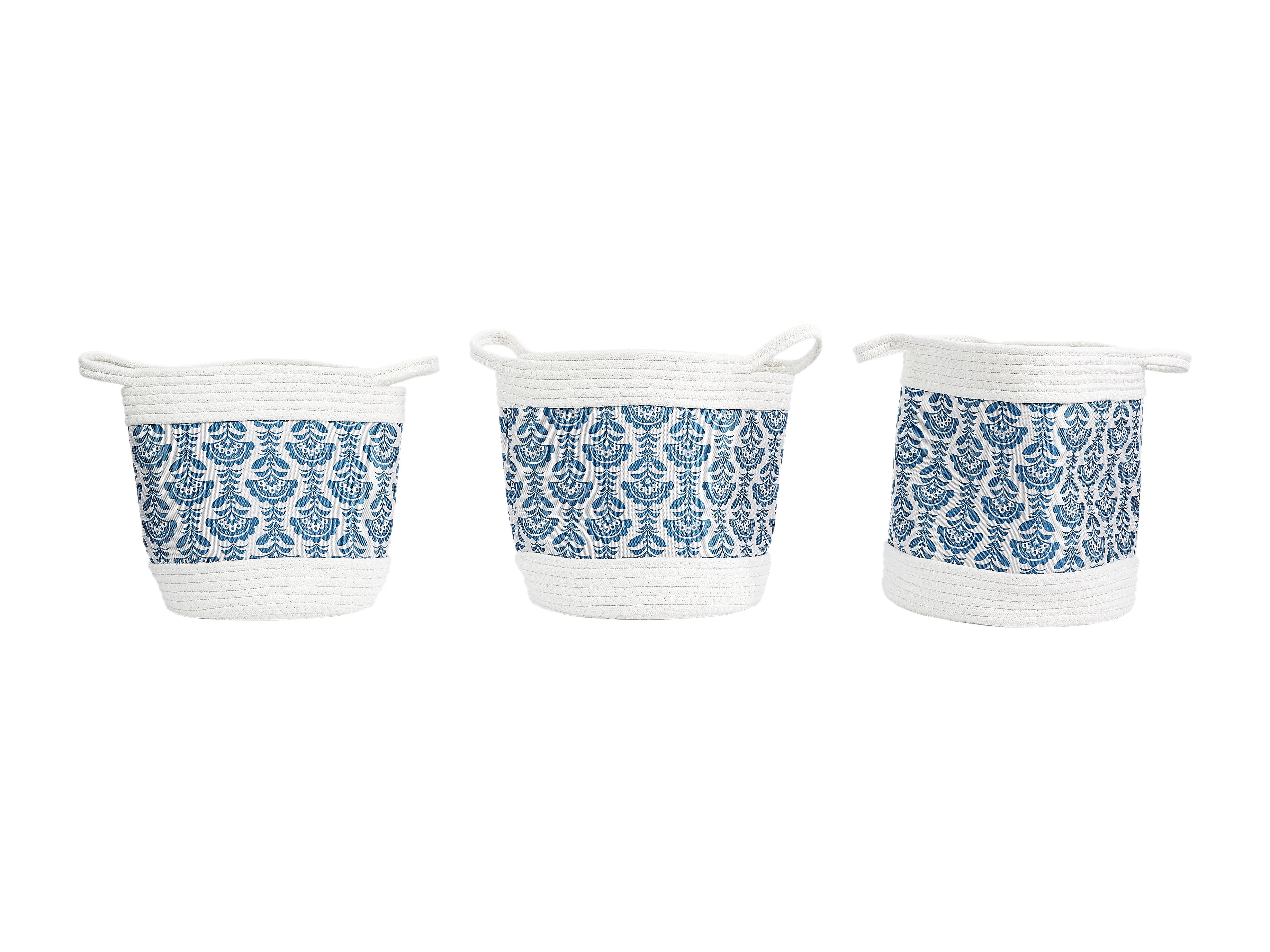 Panier De Rangement Coton Jaipur X3 Bleu, Blanc