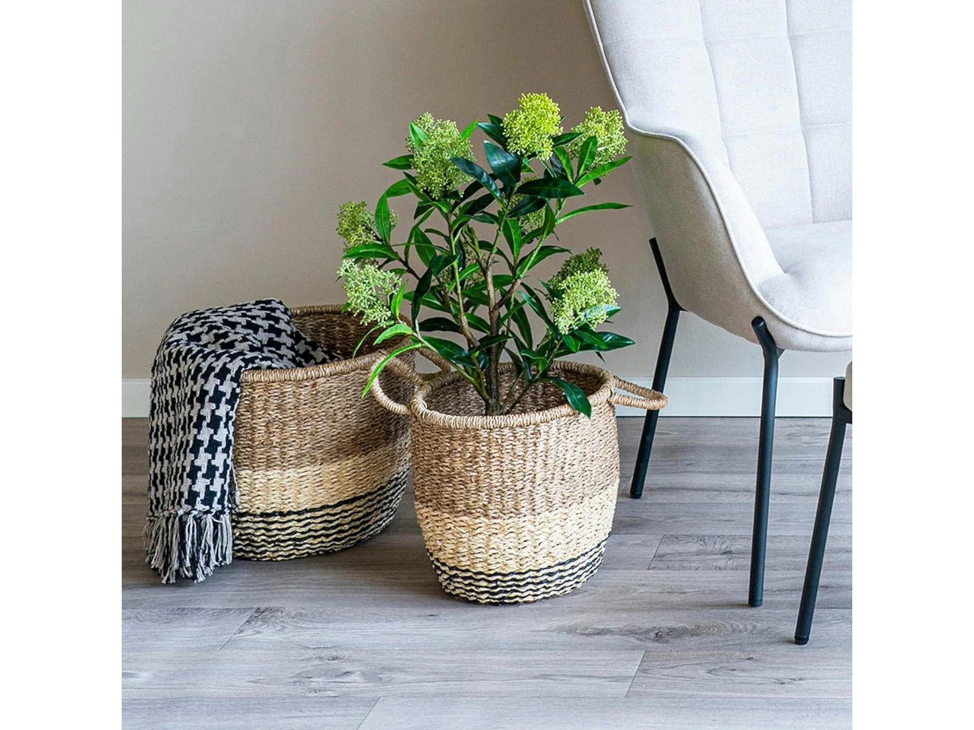 Panier de rangement en jonc de mer 3 couleurs avec poignées (lot de 2)