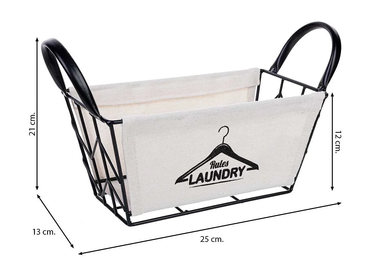 Panier de rangement en métal et tissu 31x18x17/23h cm