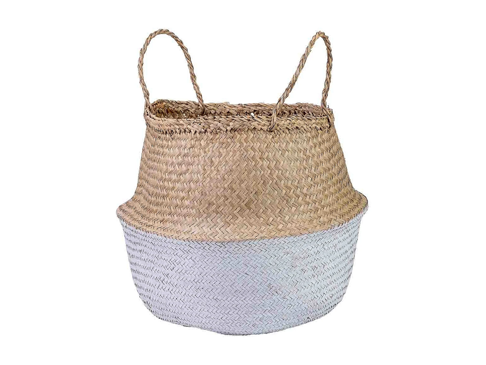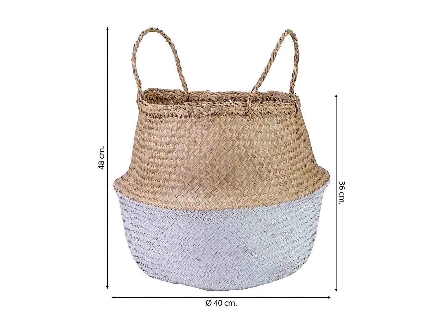 Panier naturel avec anses, peinture blanche, D40x36/48h cm