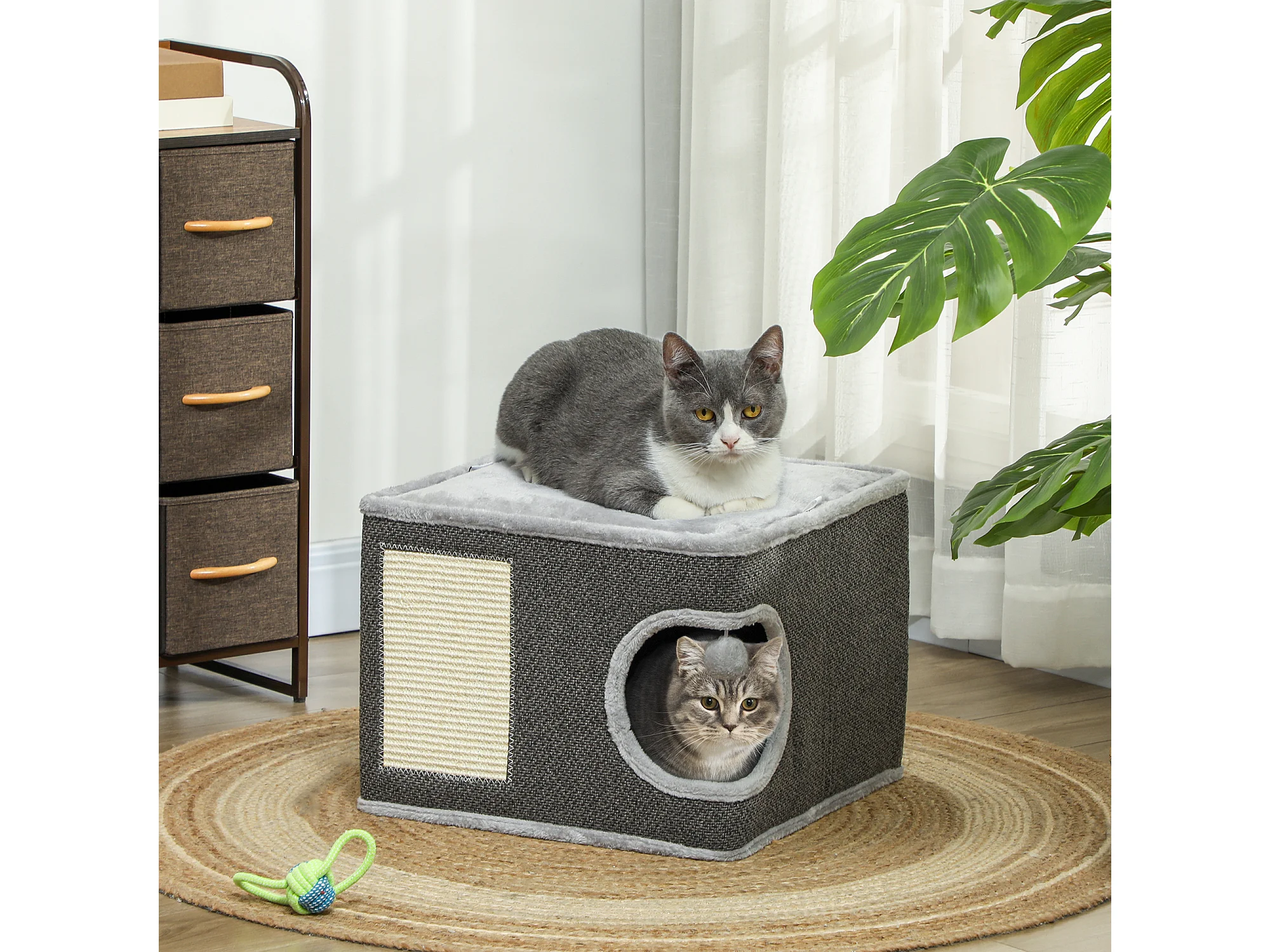 PawHut Panier chat lit chat cosy grand confort dim. 42L x 33l x 52H cm coloris gris coussin moelleux beige inclus