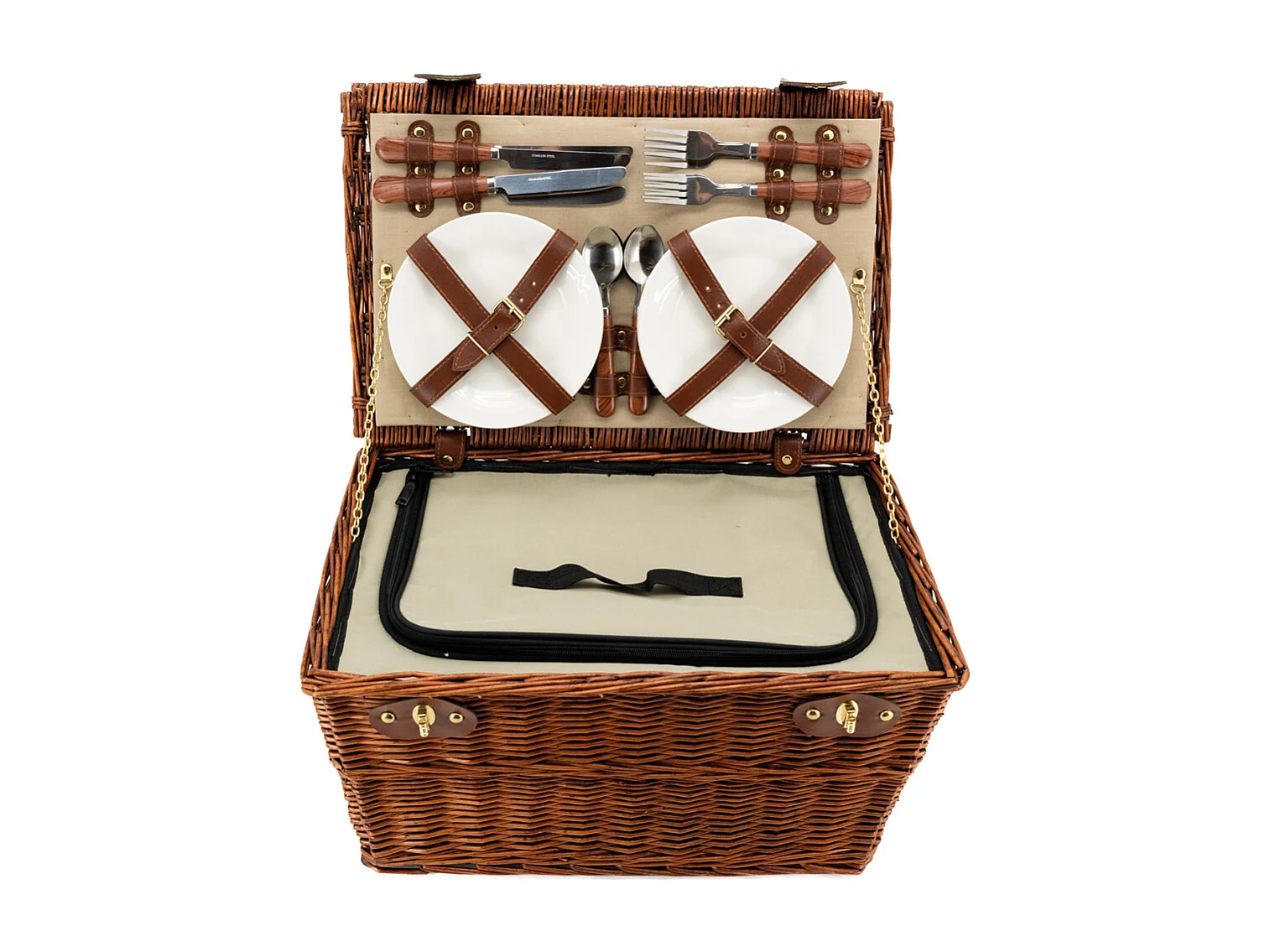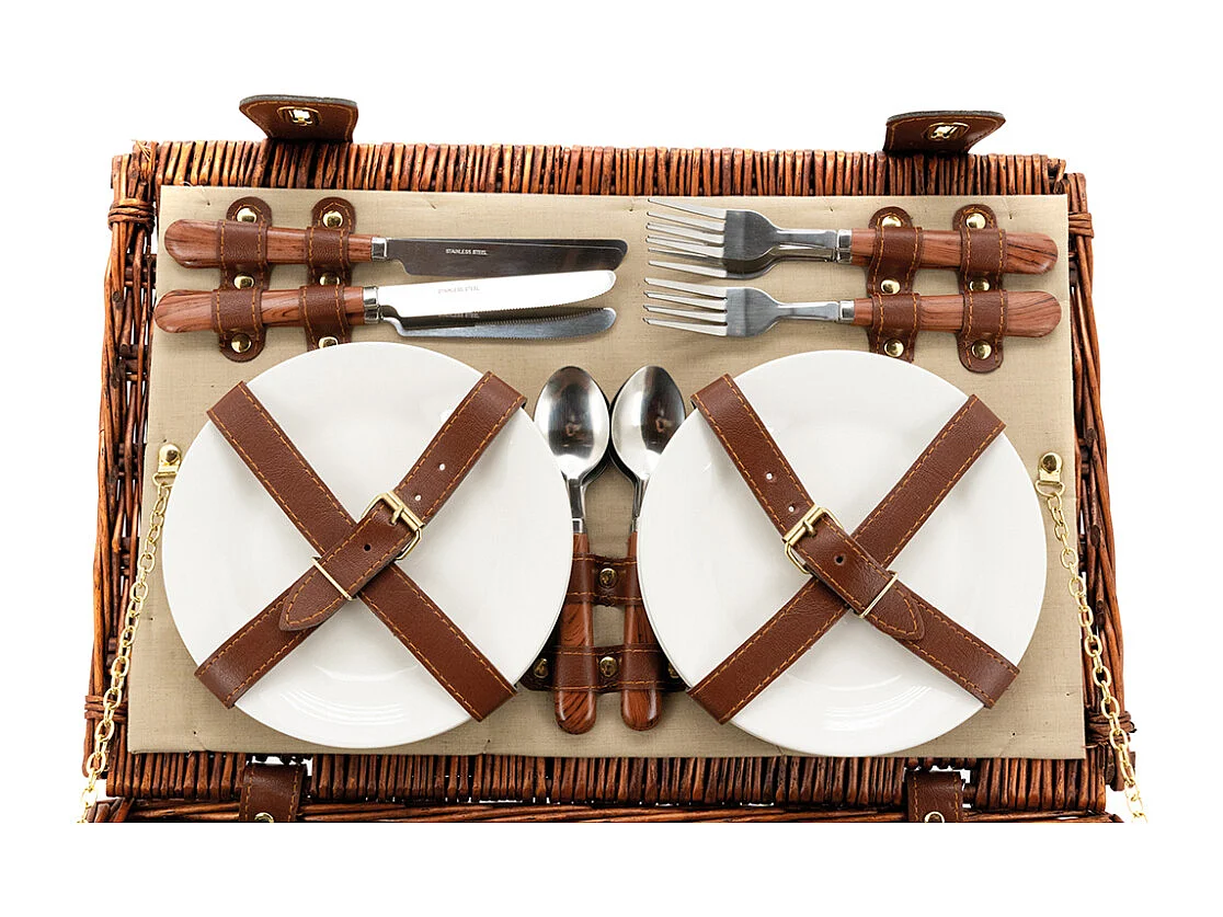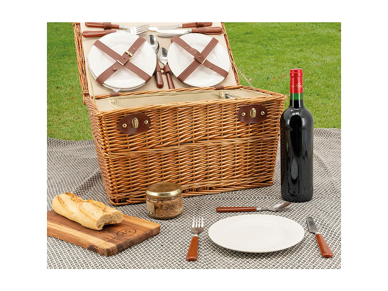 Panier pique-nique rond en osier clair 2 couvert Cerise