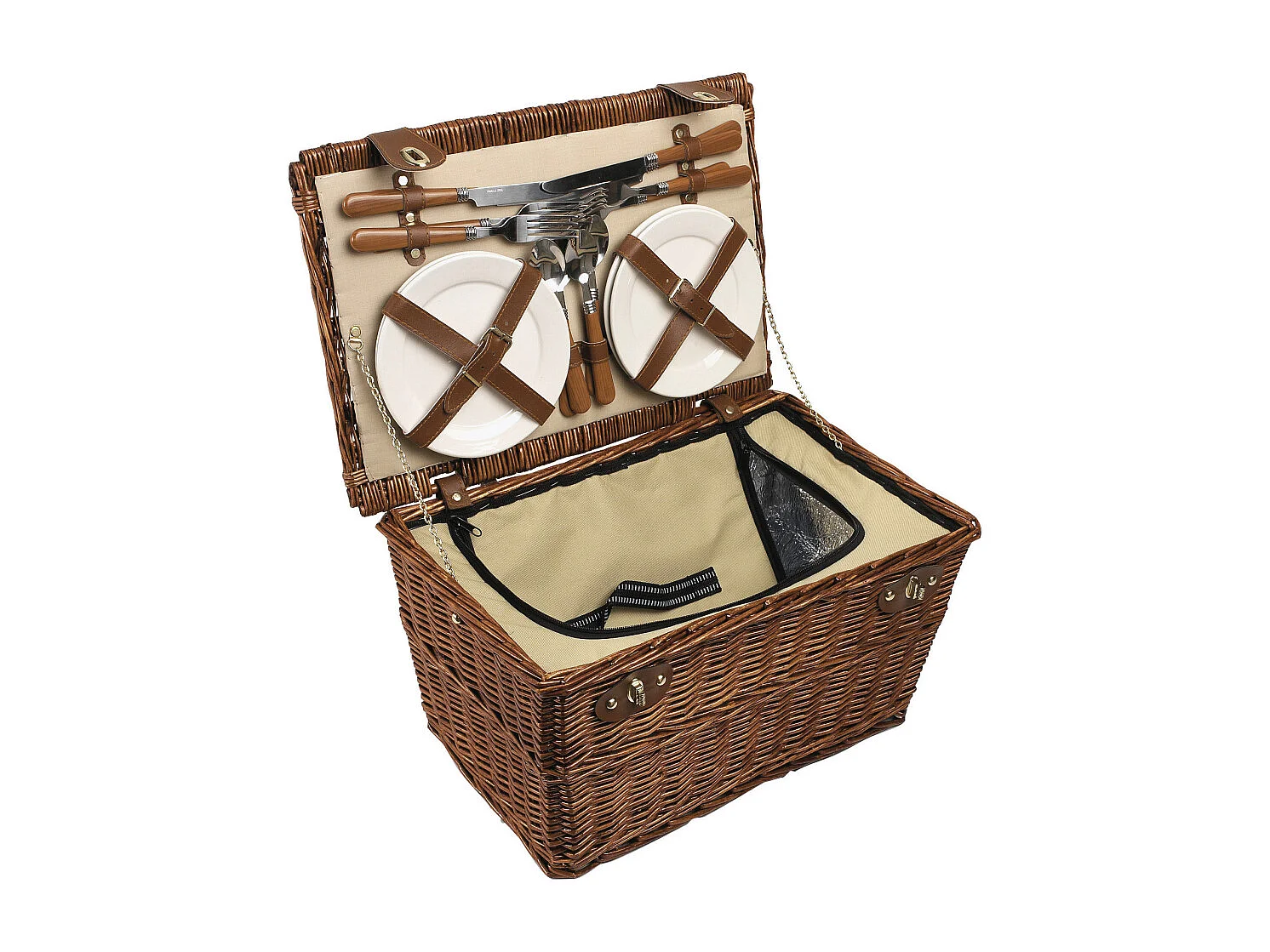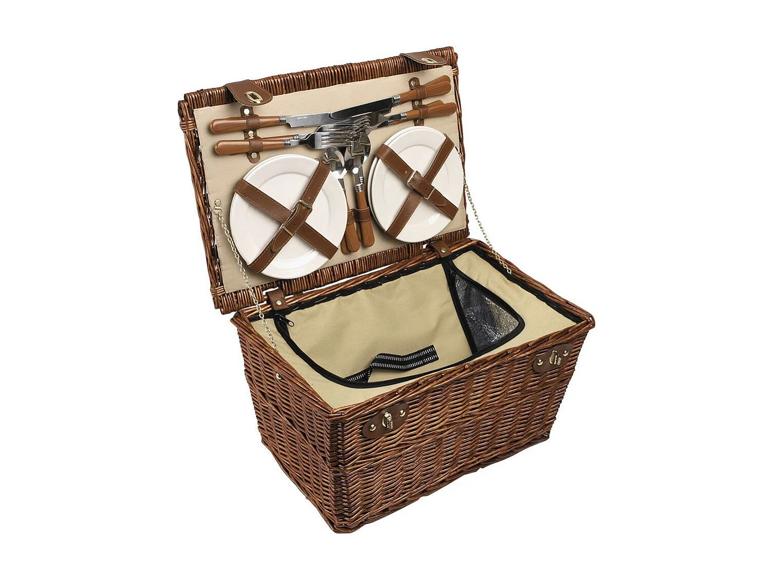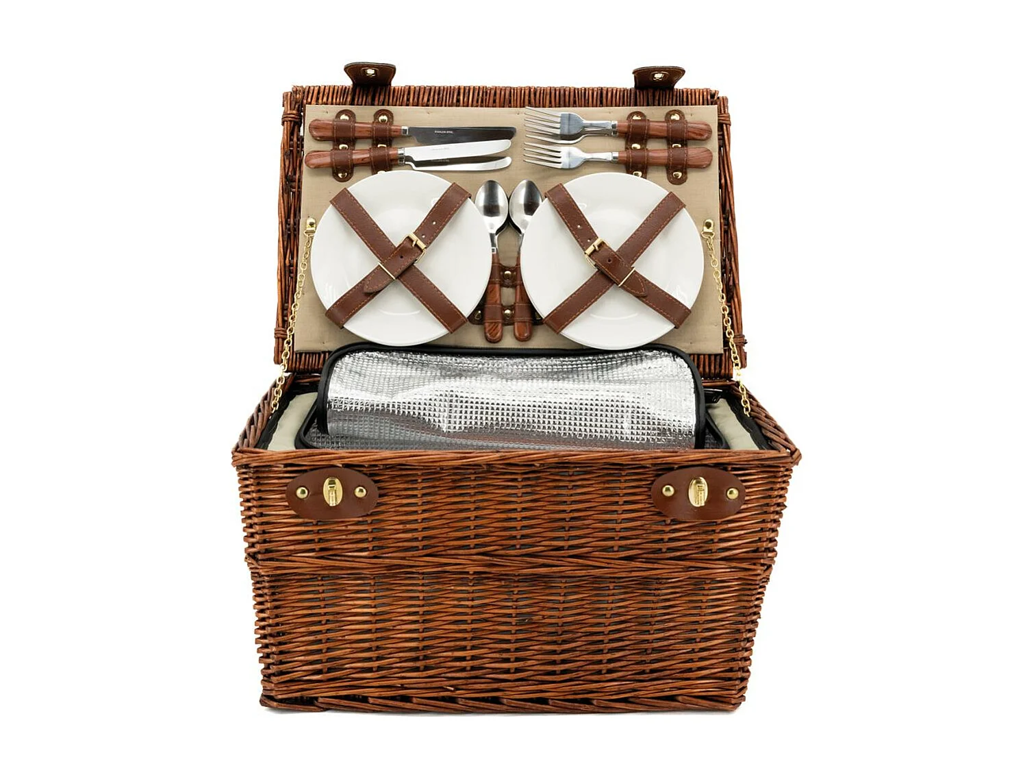 Panier pique-nique rond en osier clair 2 couvert Cerise