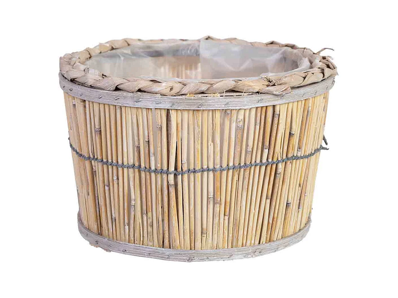 Corbeille / Panier rond D. 28 cm avec tressage en bambou - GIDEON