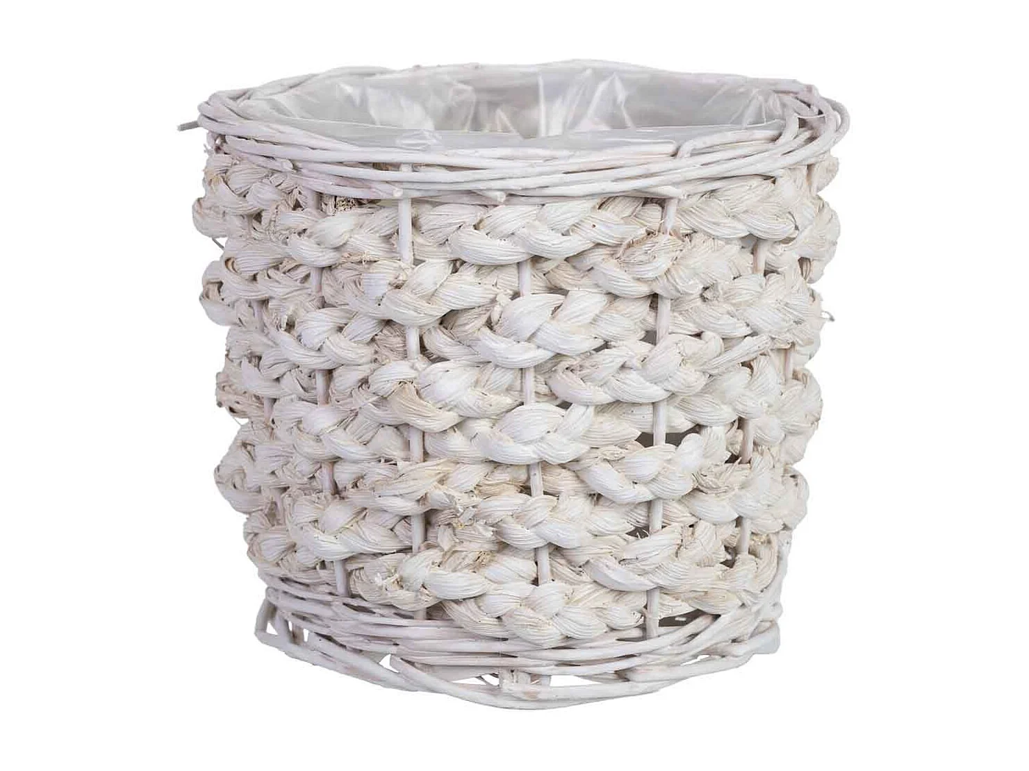 Panier naturel avec anses, peinture blanche, D40x36/48h cm