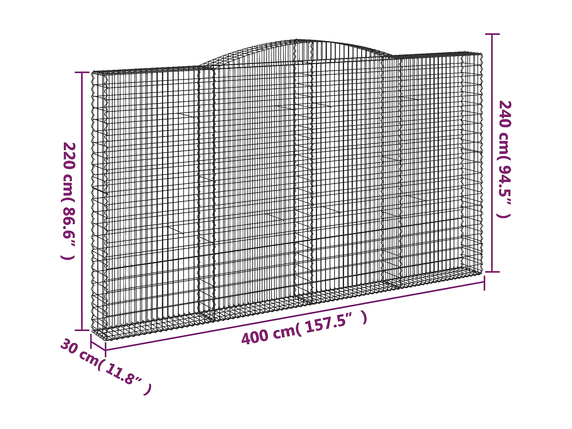 Paniers à gabions arqués 8 pièces 400x30x220/240 cm Fer galvanisé