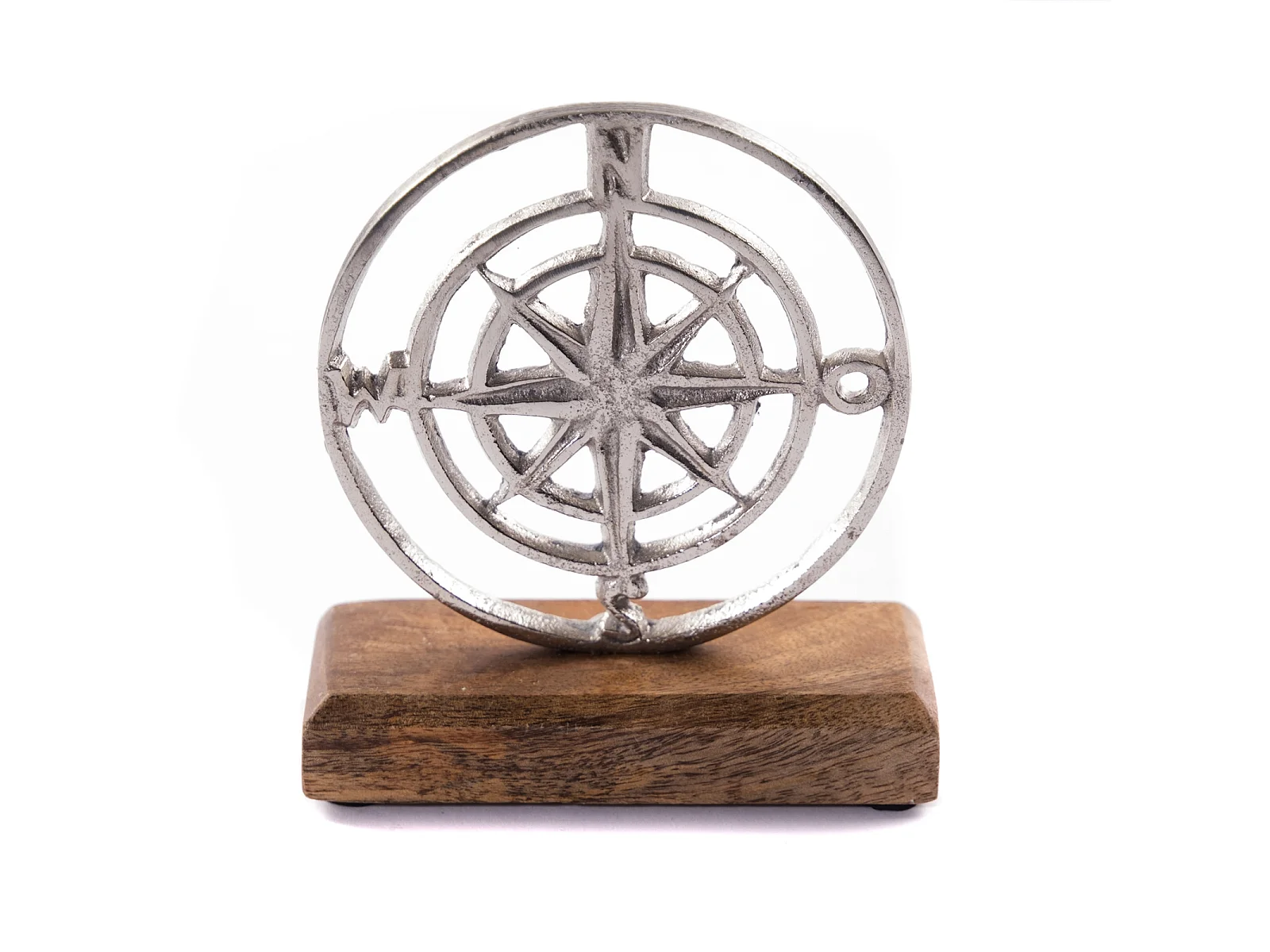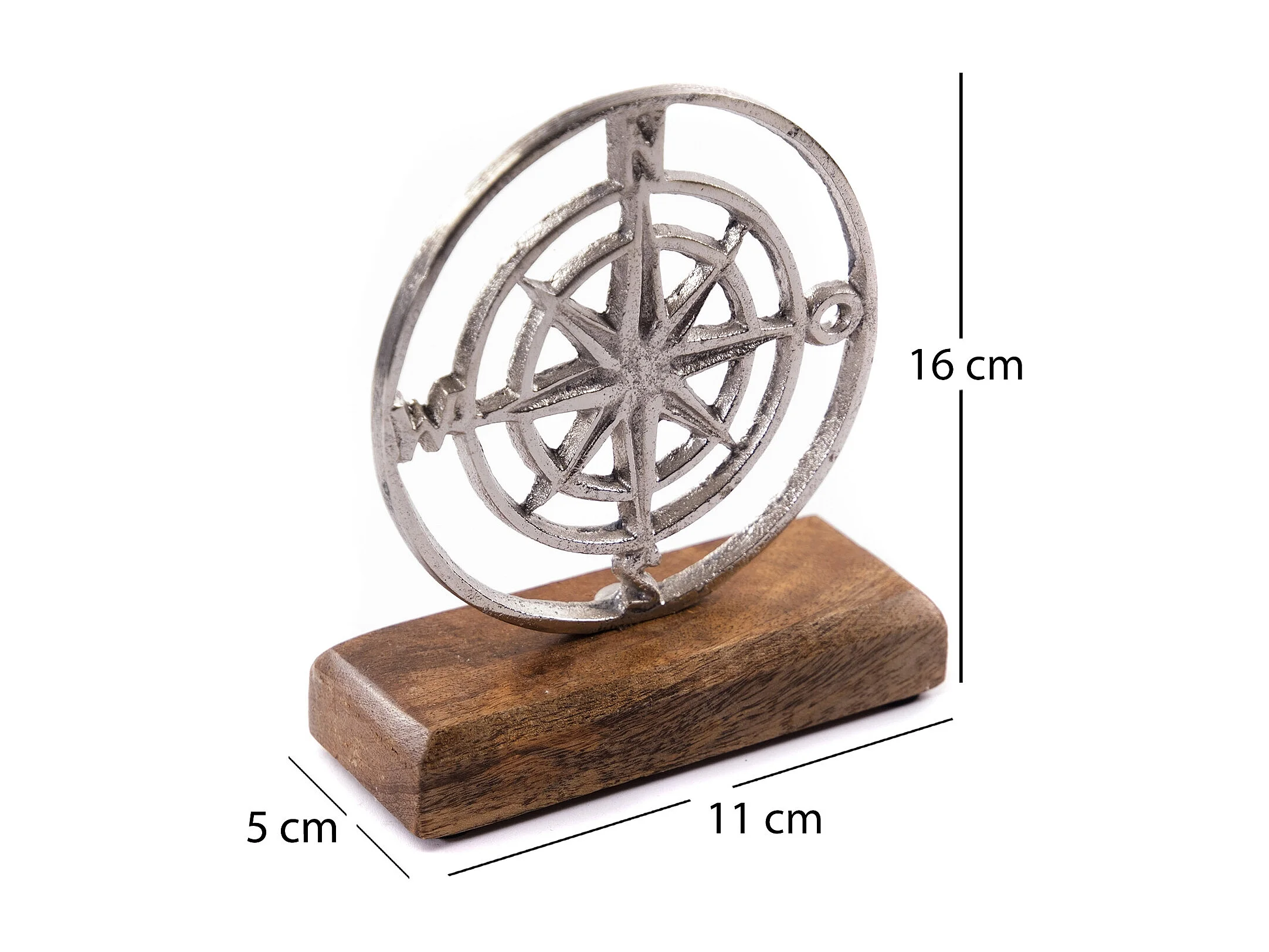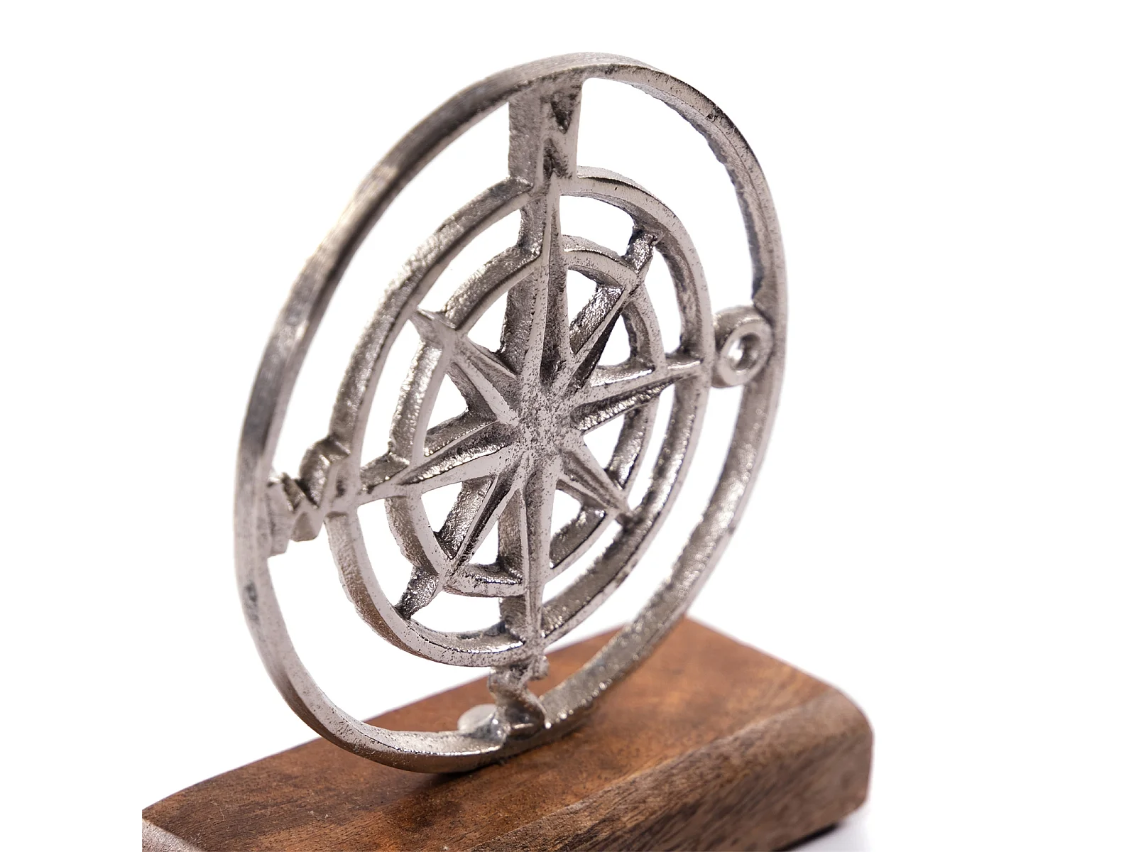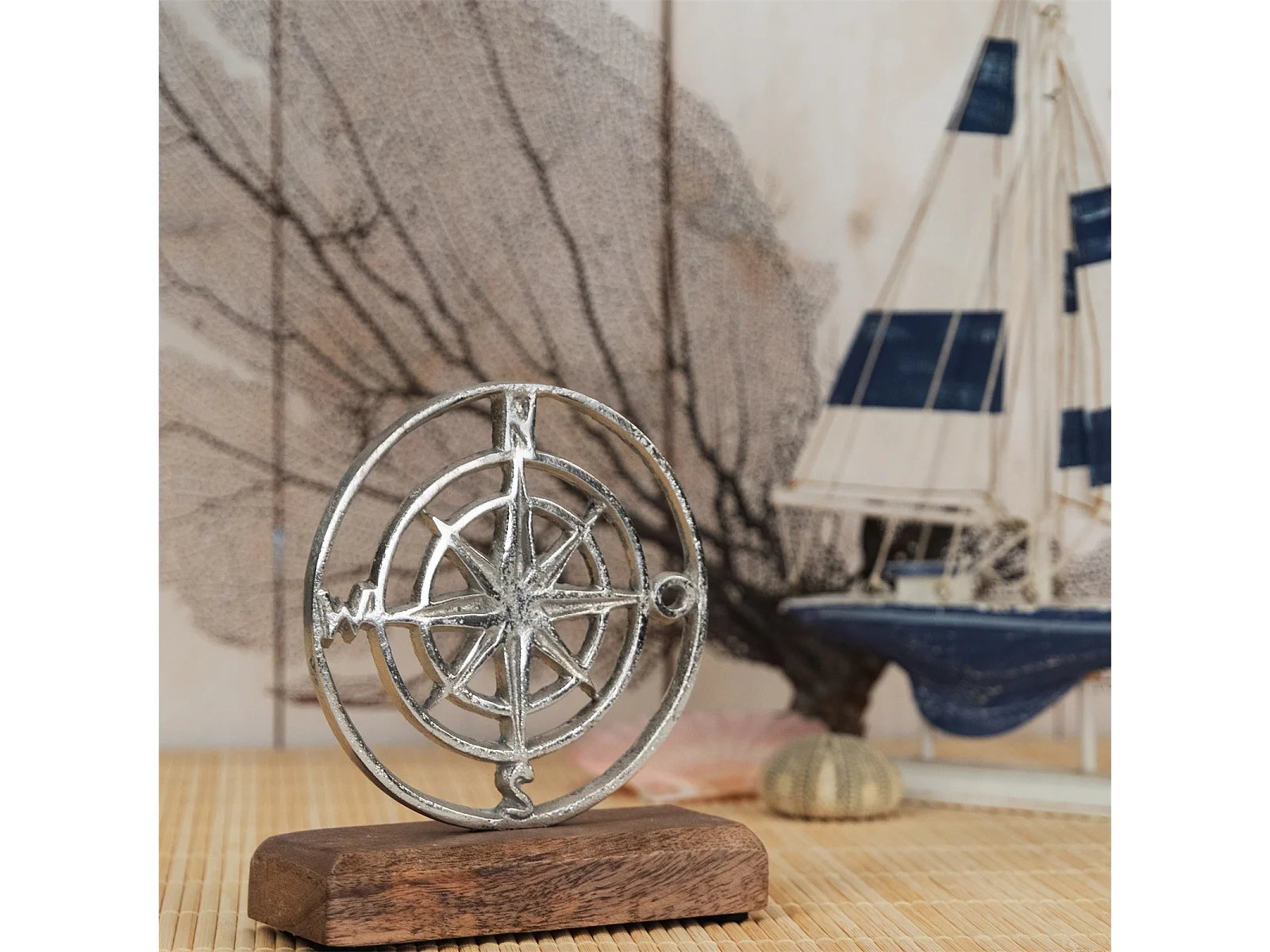 PANNEAU D'AFFICHAGE Ancre maritime et rose des vents Métal, bois de mangue argent-brun