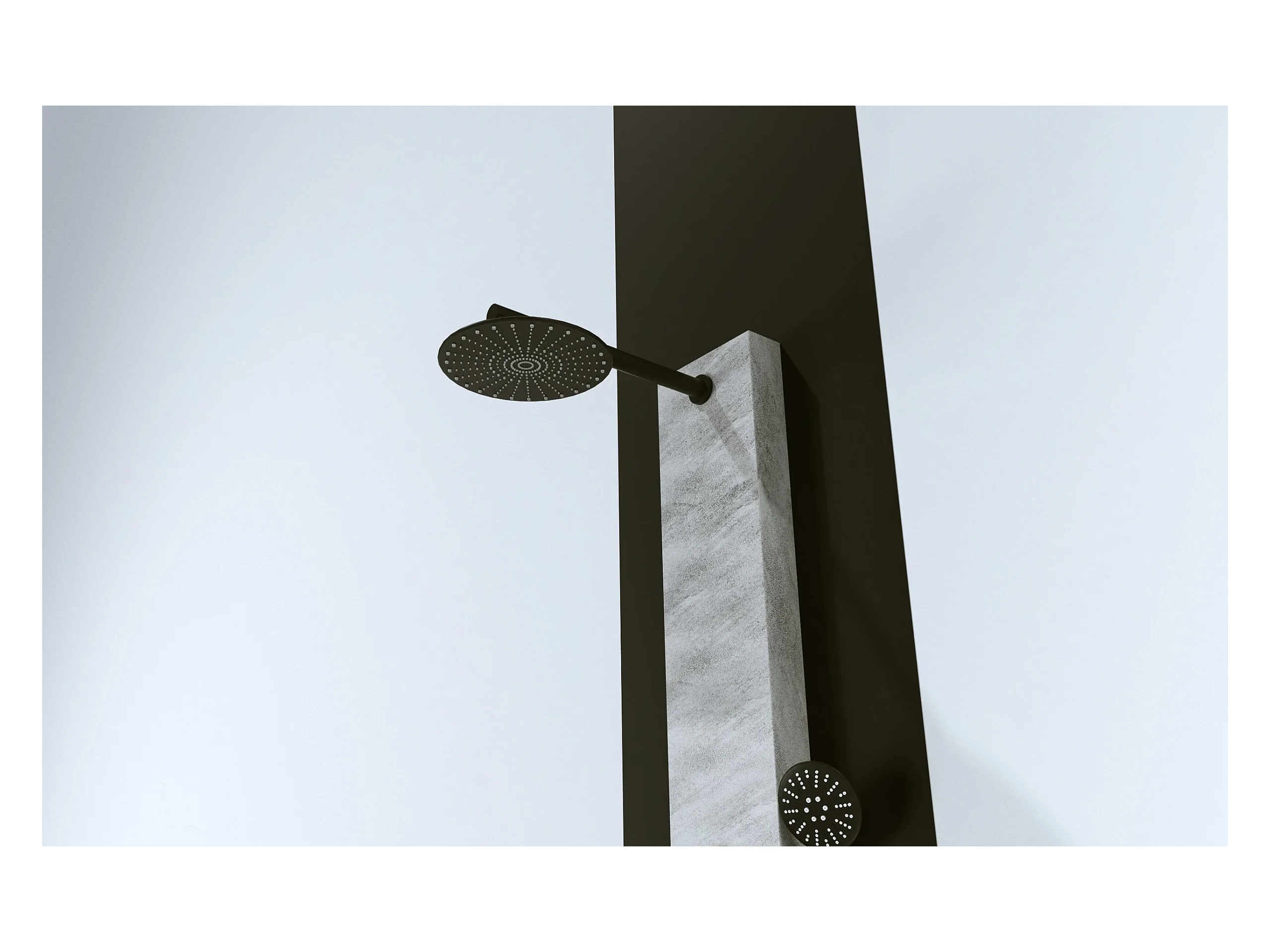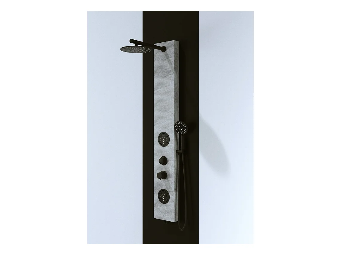 panneau de douche avec robinets noirs, Trois Fonctions en Effect Pierre gris, pommeau douche, douche à main, gets hydromassage, fixages, flexible