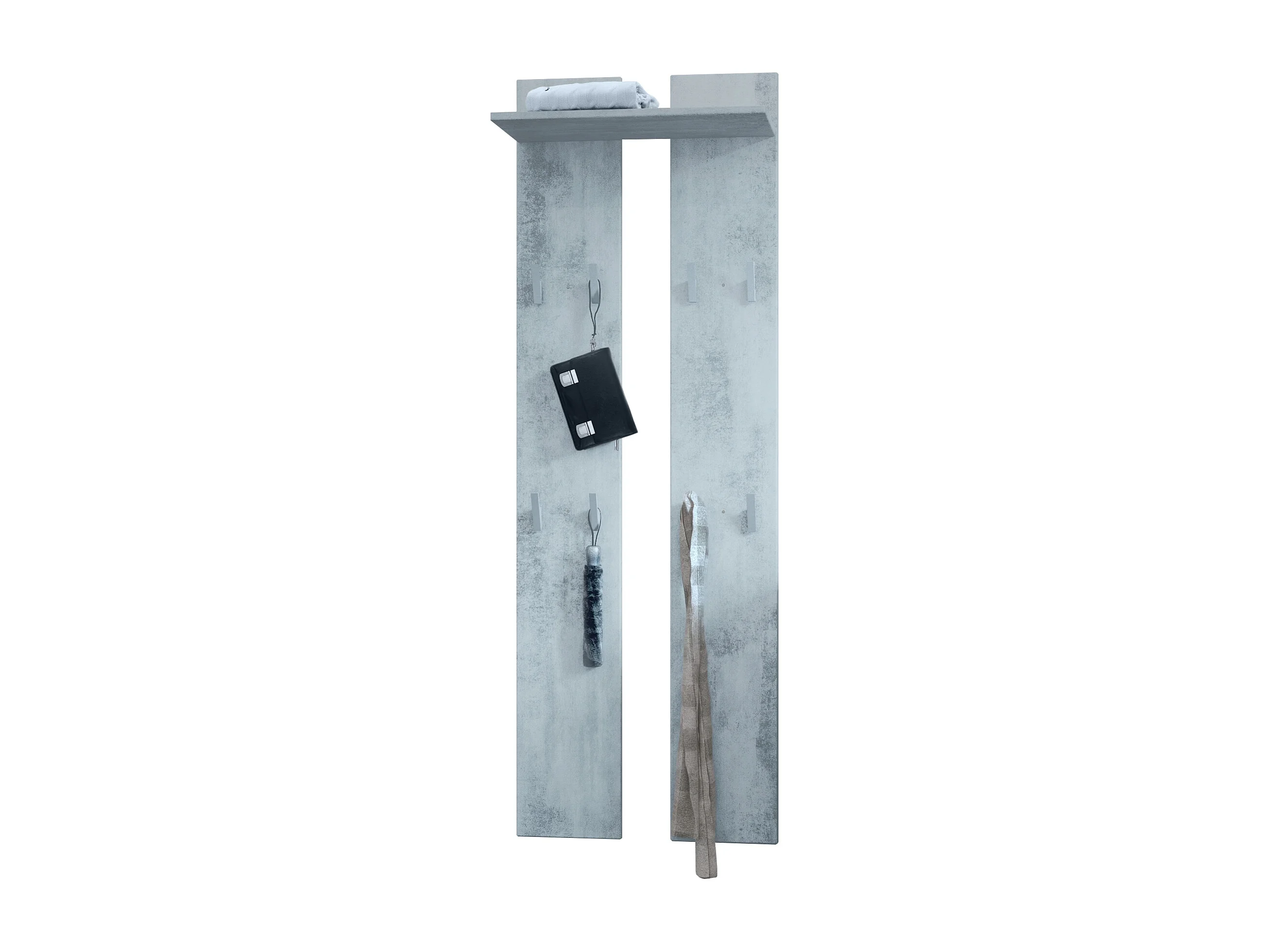 Panneau mural 170, Meuble porte-manteau composé de 2 panneaux et 1 étagère, aspect béton oxyde (57 x 170 x 20 cm)