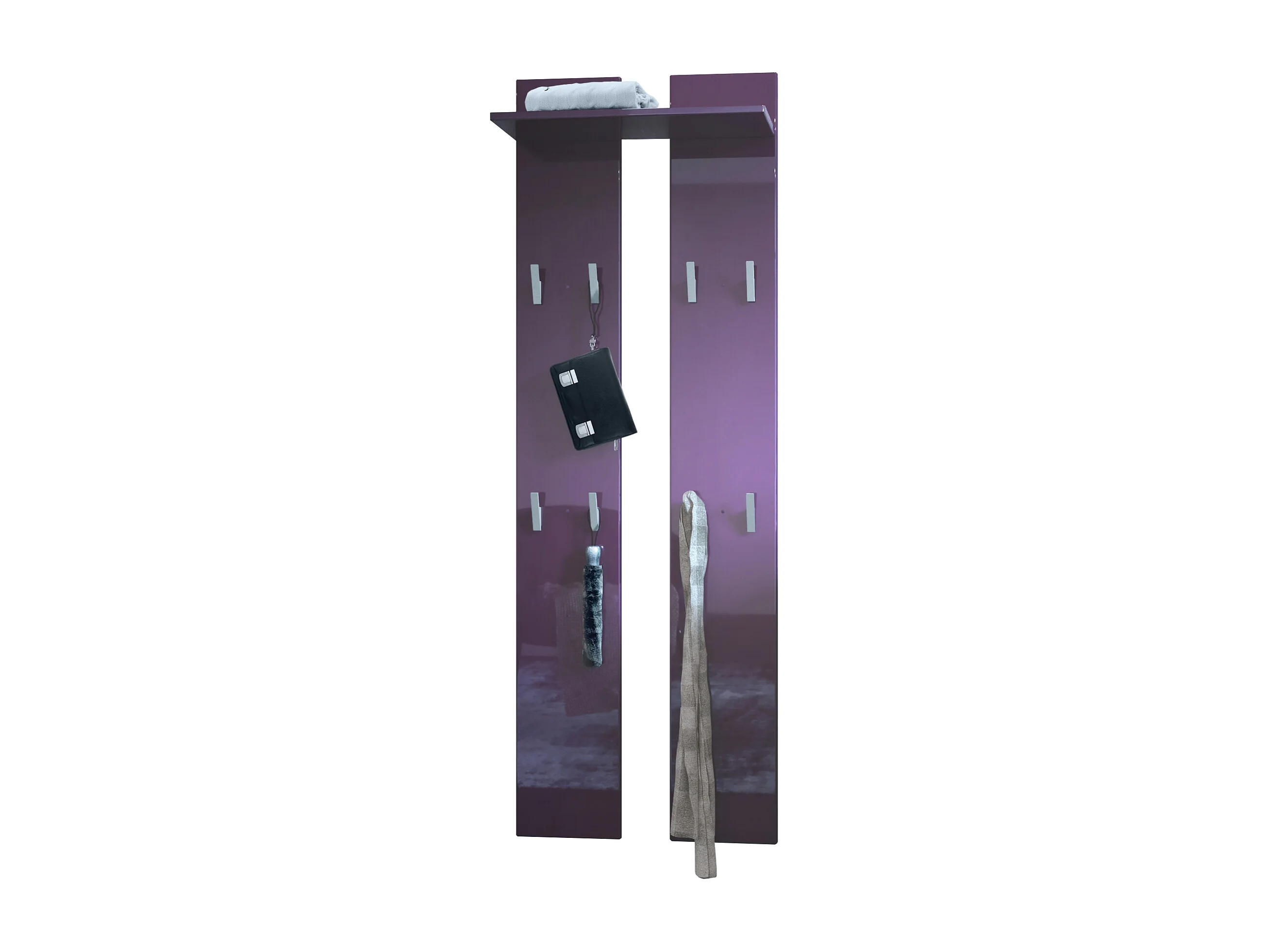 Panneau mural 170, Meuble porte-manteau composé de 2 panneaux et 1 étagère, mûre haute brillance (57 x 170 x 20 cm)