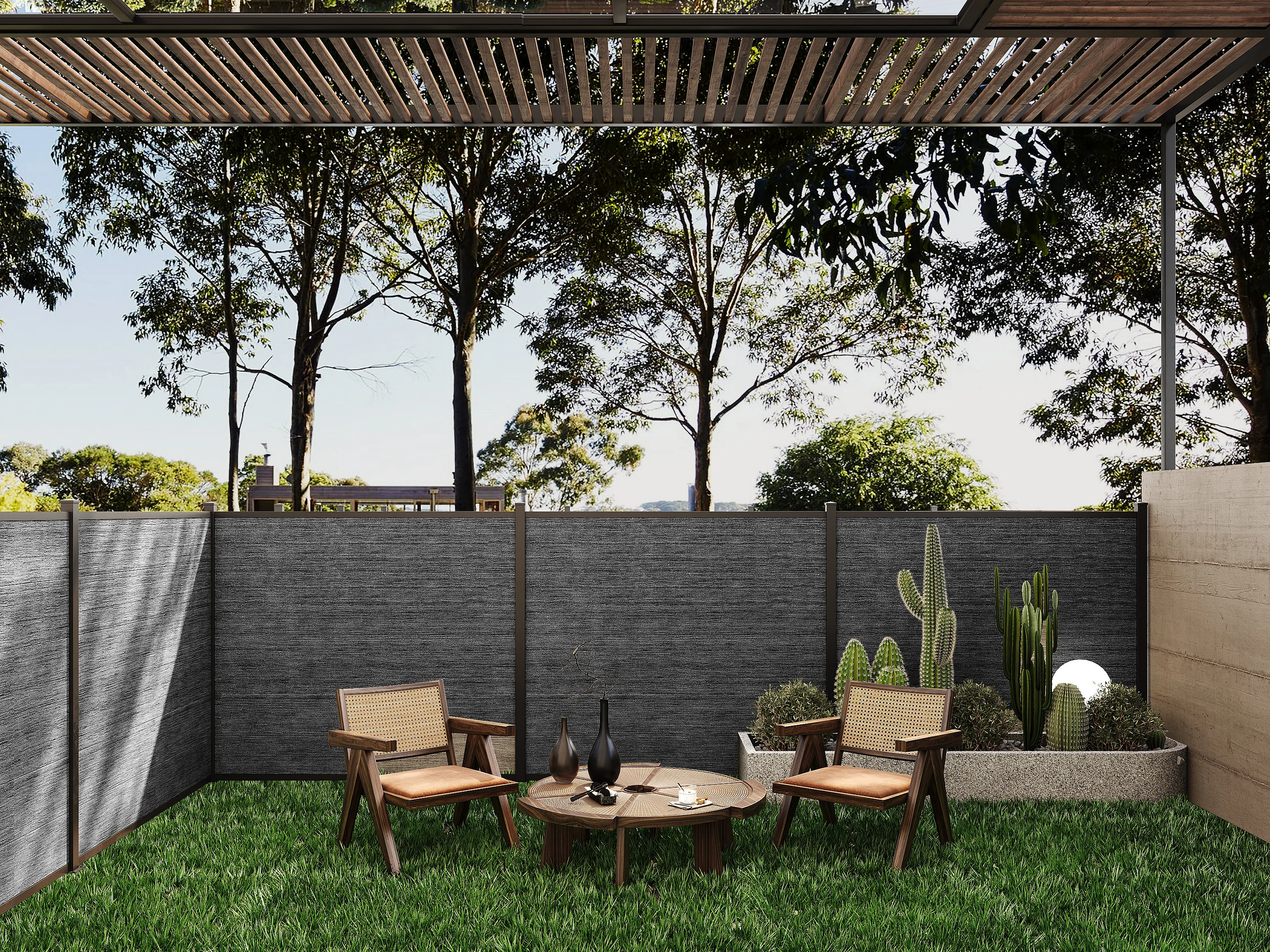 Clôture à enterrer H 156 cm - Kit de 6 lames en composite + 1 poteau anthracite - ENOLA