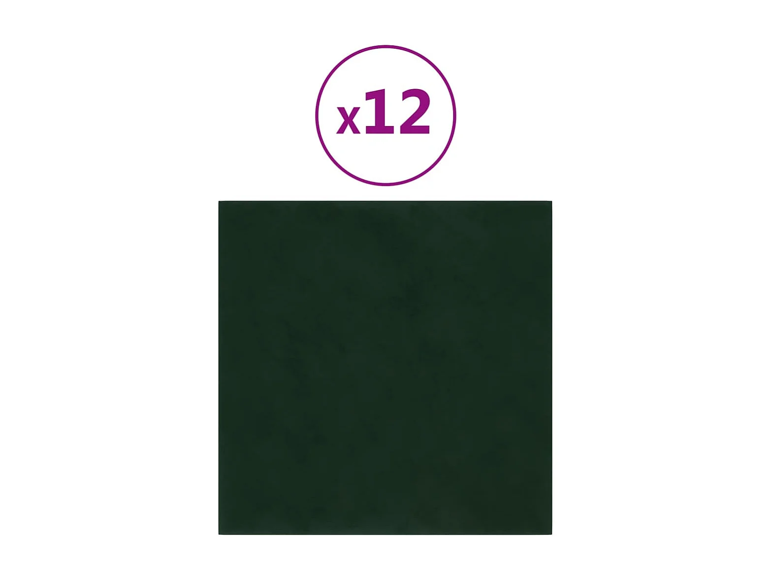 Senne Panneaux muraux 12 pcs Vert foncé 30x30 cm Velours 1,08 m²
