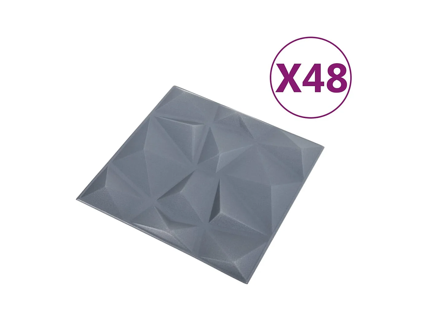 Panneaux muraux 3D 48 pcs 50x50 cm gris diamant 12 m² FR934586