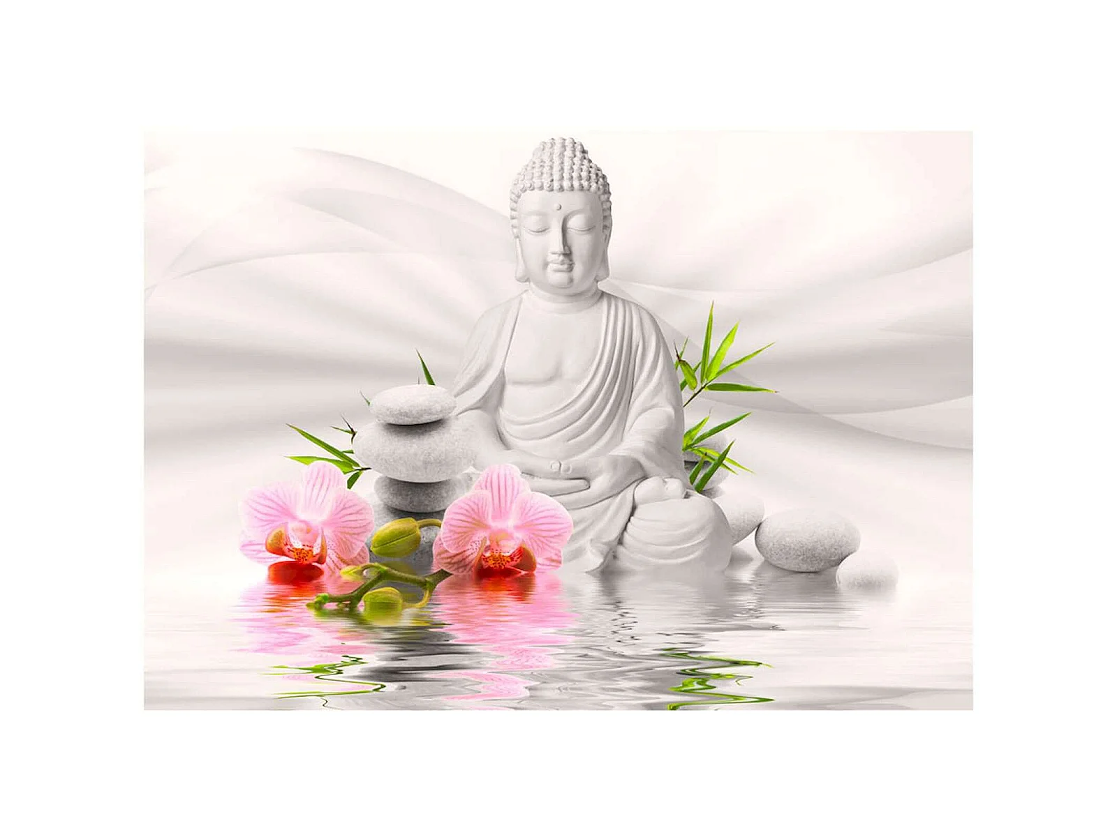 Papier peint adhésif Bouddha et orchidées - 98 x 70 cm