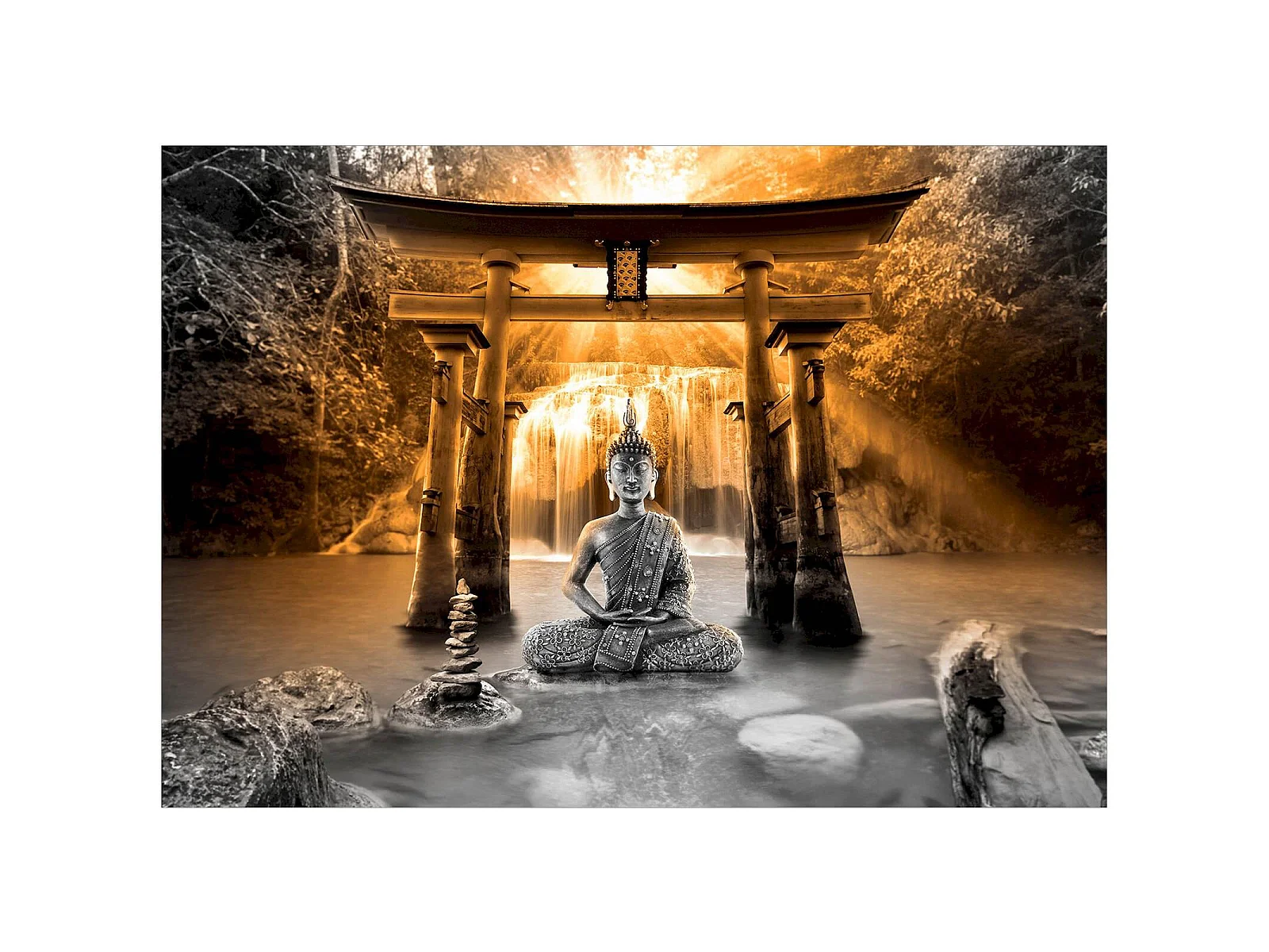 Papier peint adhésif Sourire de bouddha - 98 x 70 cm