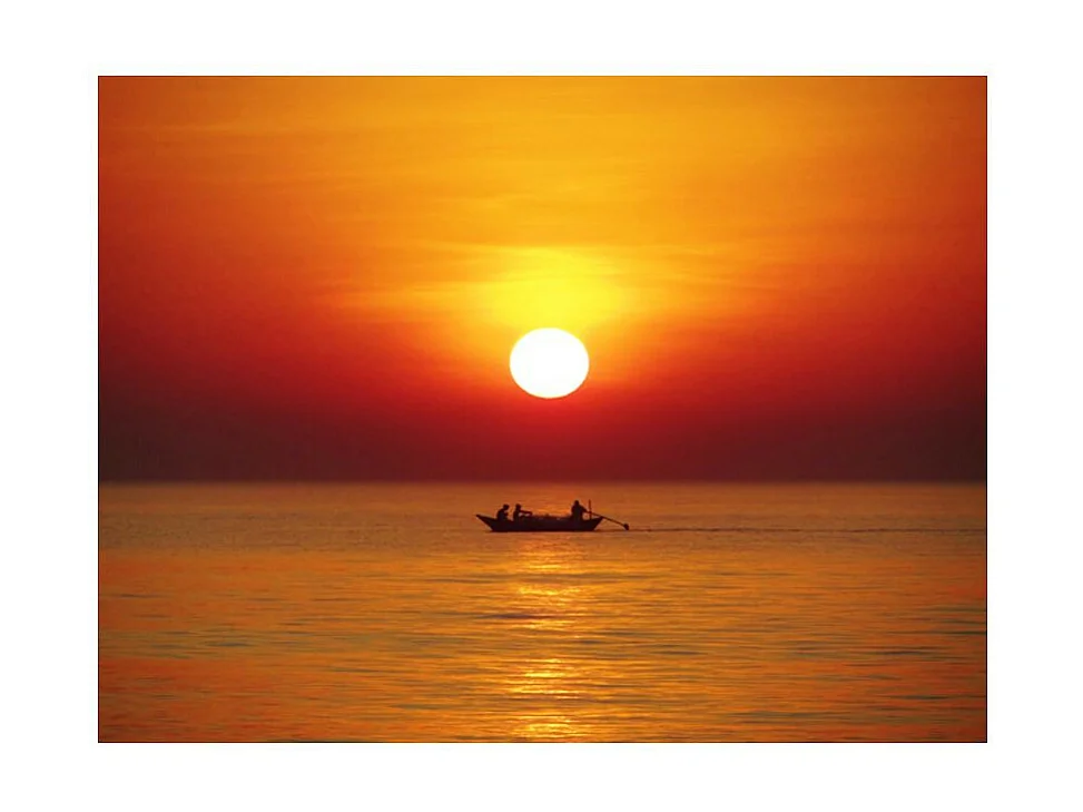 Papier Peint "Bateau de Pêche au Coucher de Soleil" 154 x 200 cm